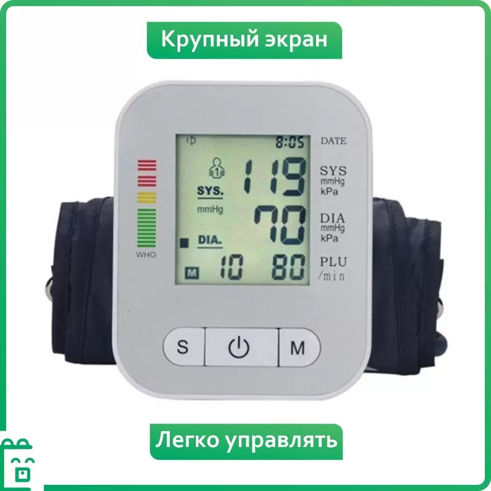 | Особенности | автоматическое отключение / безболезненная манжета / управление одной кнопкой / фиксация даты и времени / шкала ВОЗ |