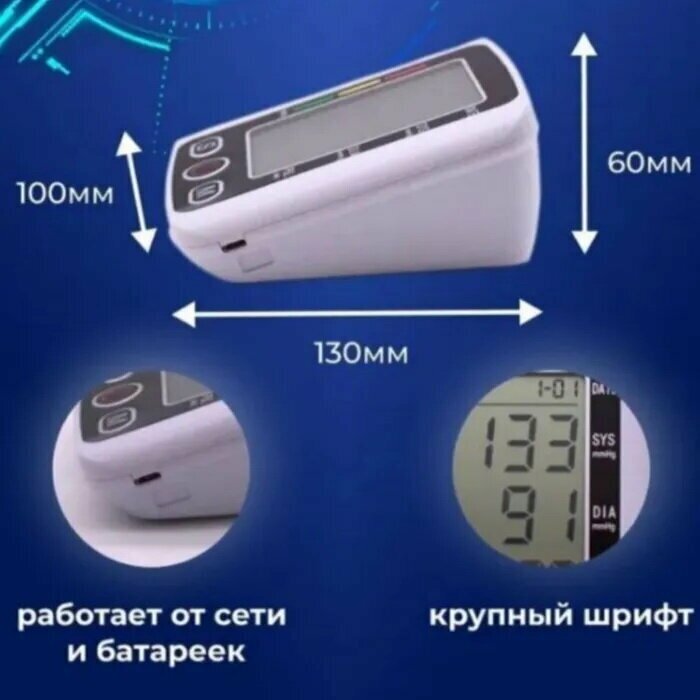 Тонометр Electric Blood Arm Style/TM-100/артериальное давление/ пульс/простой в использовании/4 AAA/USB/белый интересное: