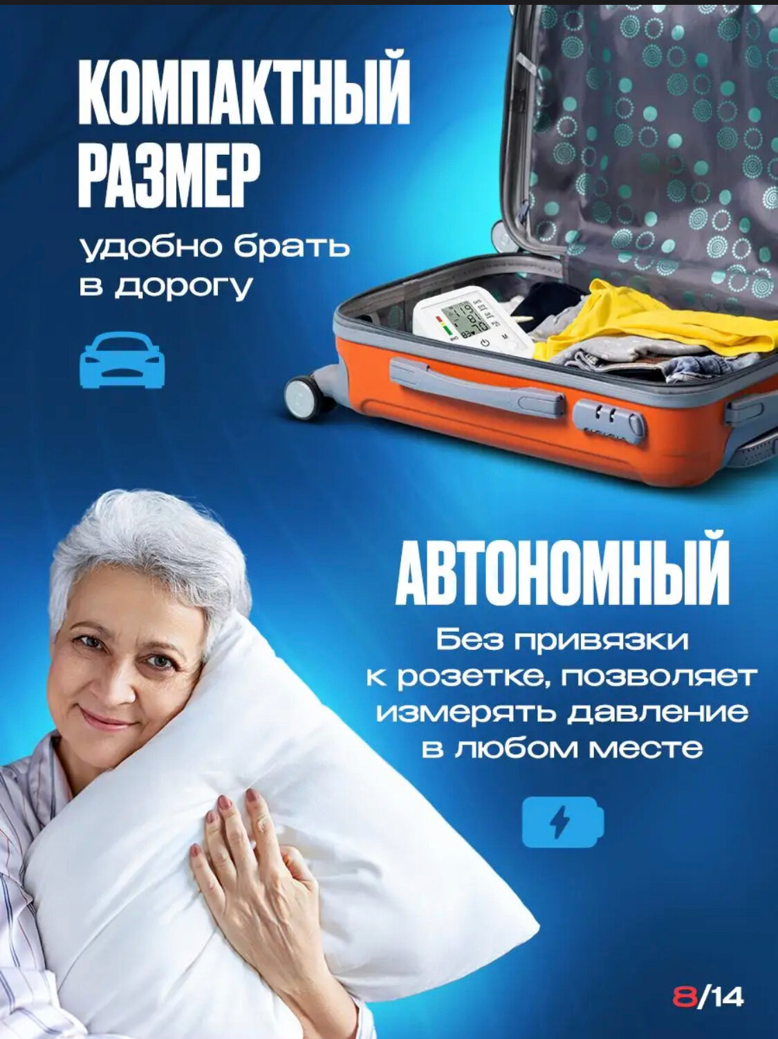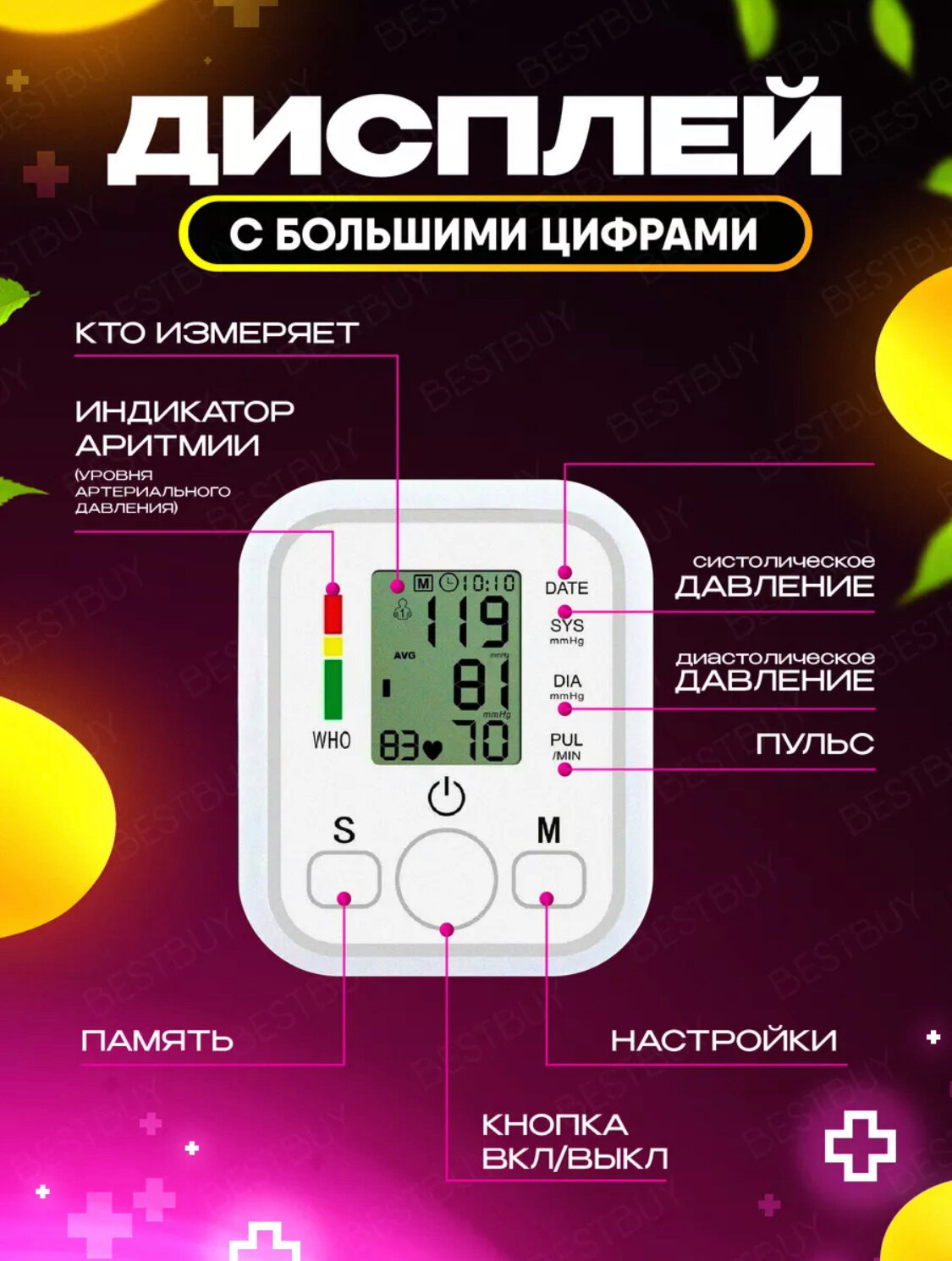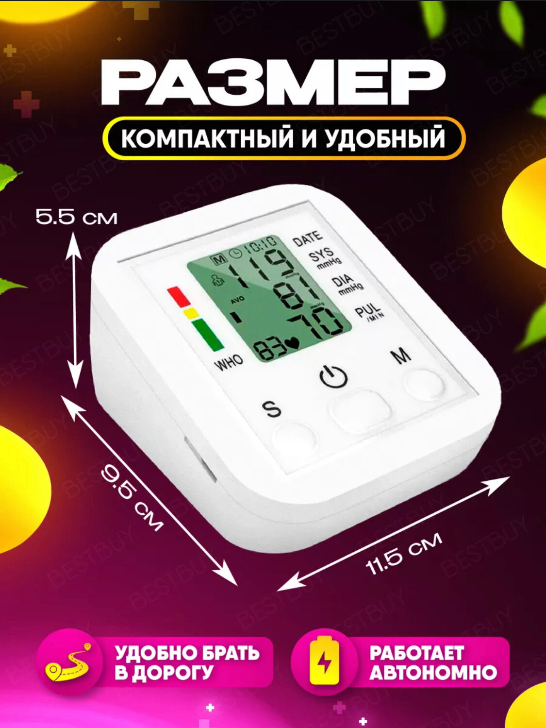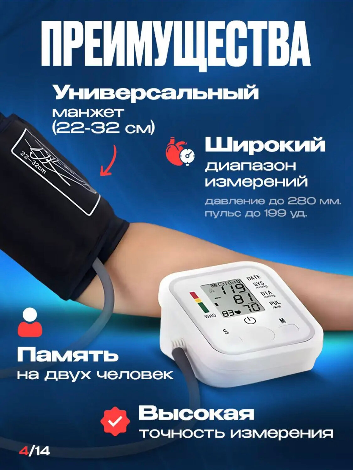 Тонометр автоматический для измерения давления на плечо, манжета 22-32 см / батарейки в комплекте + USB провод интересное: