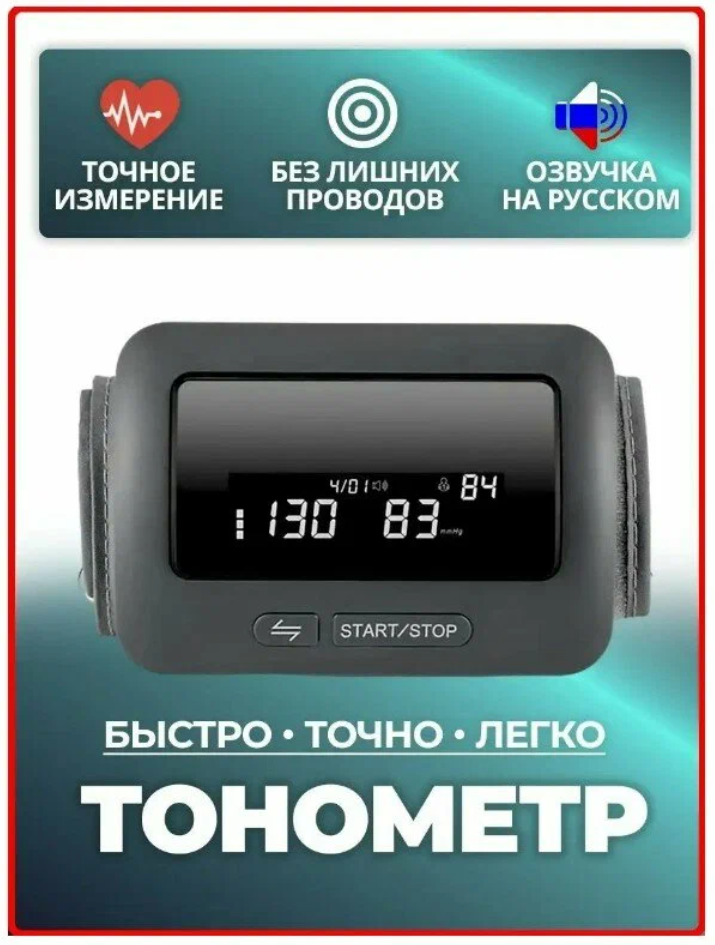 Электронный автоматический тонометр с датчиком аритмии и голосовым помощником/ Black интересное: