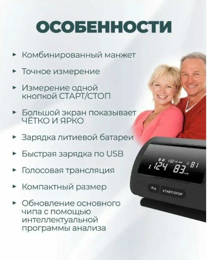 | Функции | голосовое оповещение / измерение пульса / режим нескольких измерений |