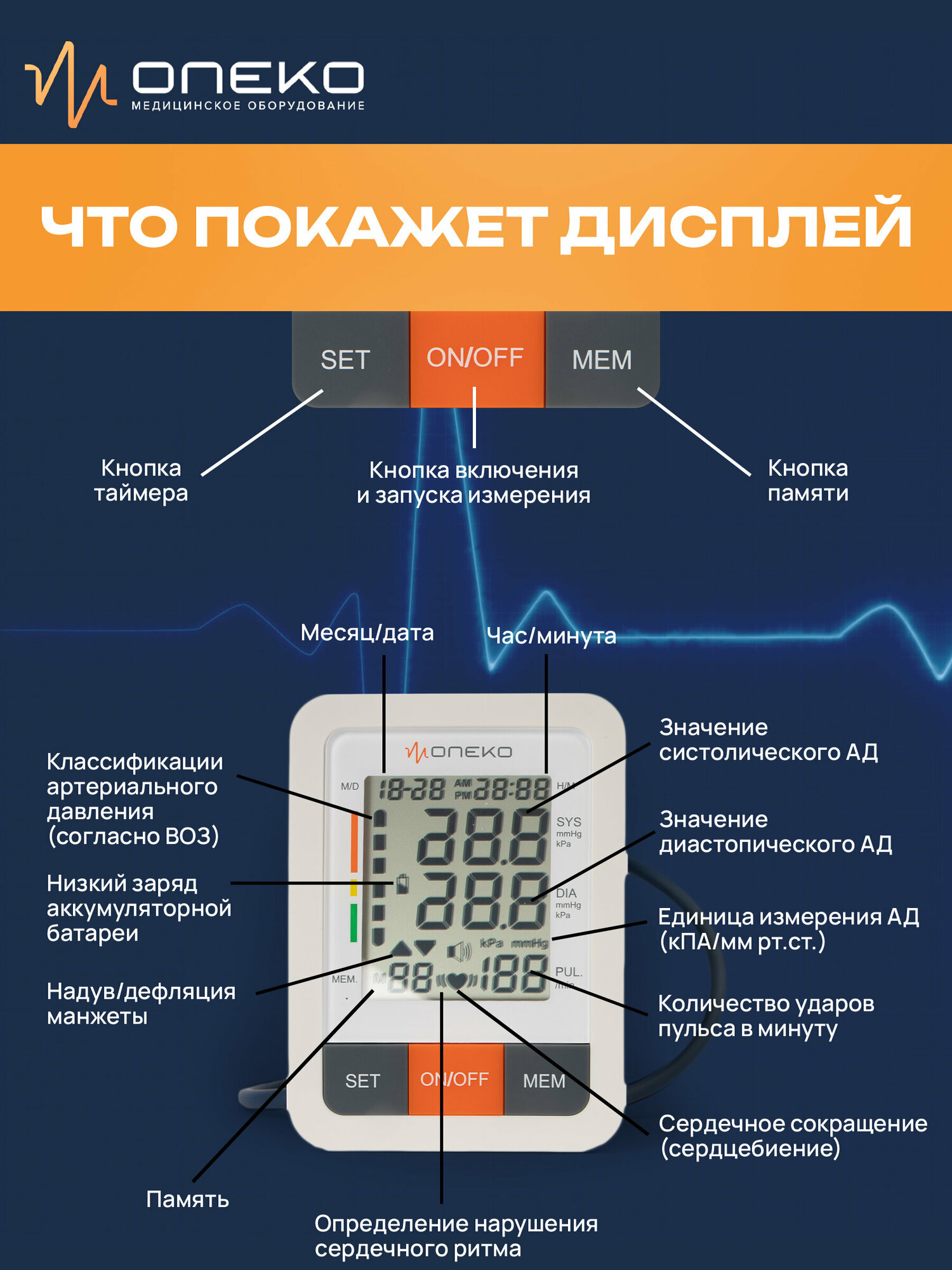 Тонометр плечевой автоматический Moneko PG-800B31 интересное: