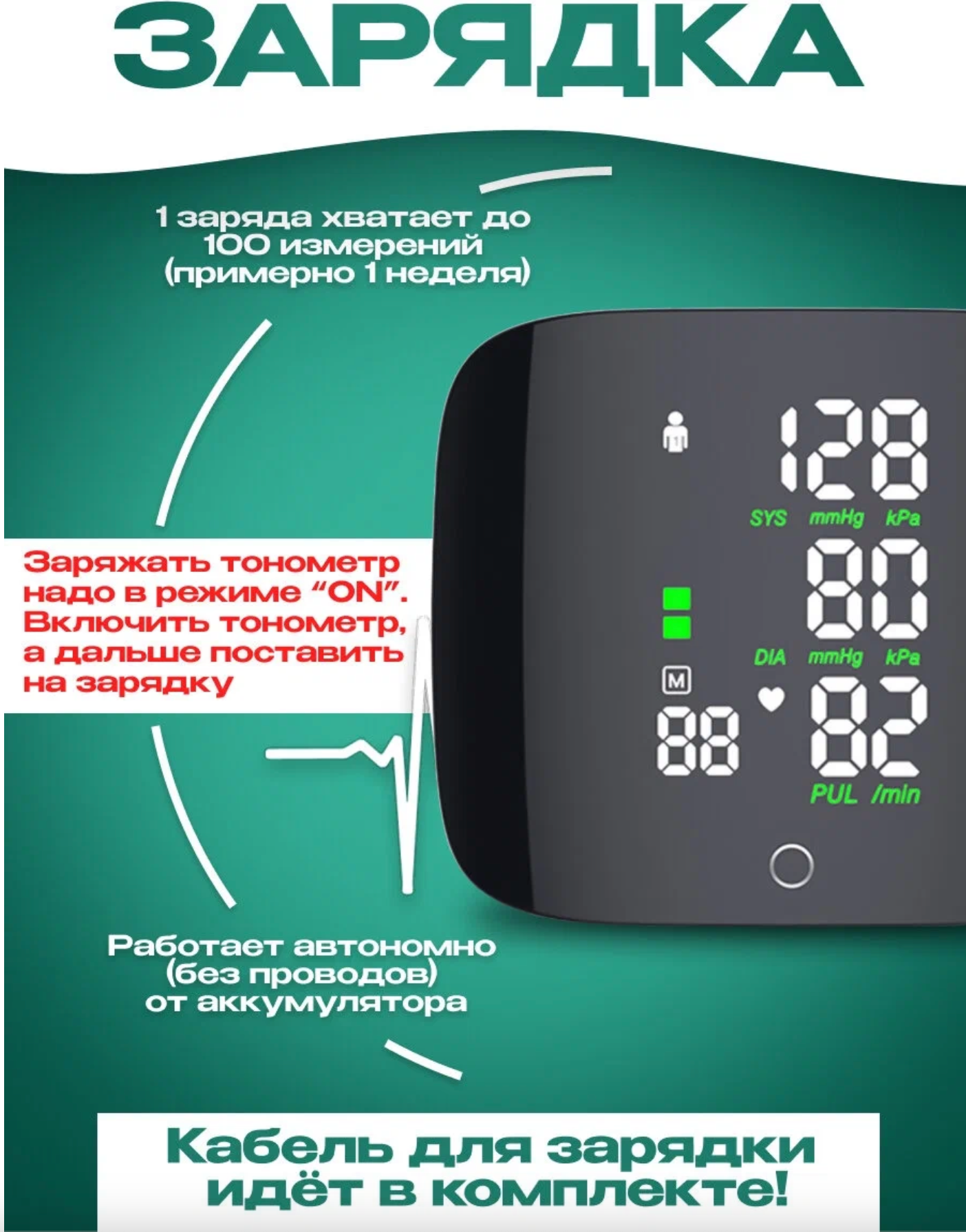 | Индикация | графический индикатор уровня АД / индикатор аритмии / индикатор повышенного давления / индикатор уровня заряда батареи |
