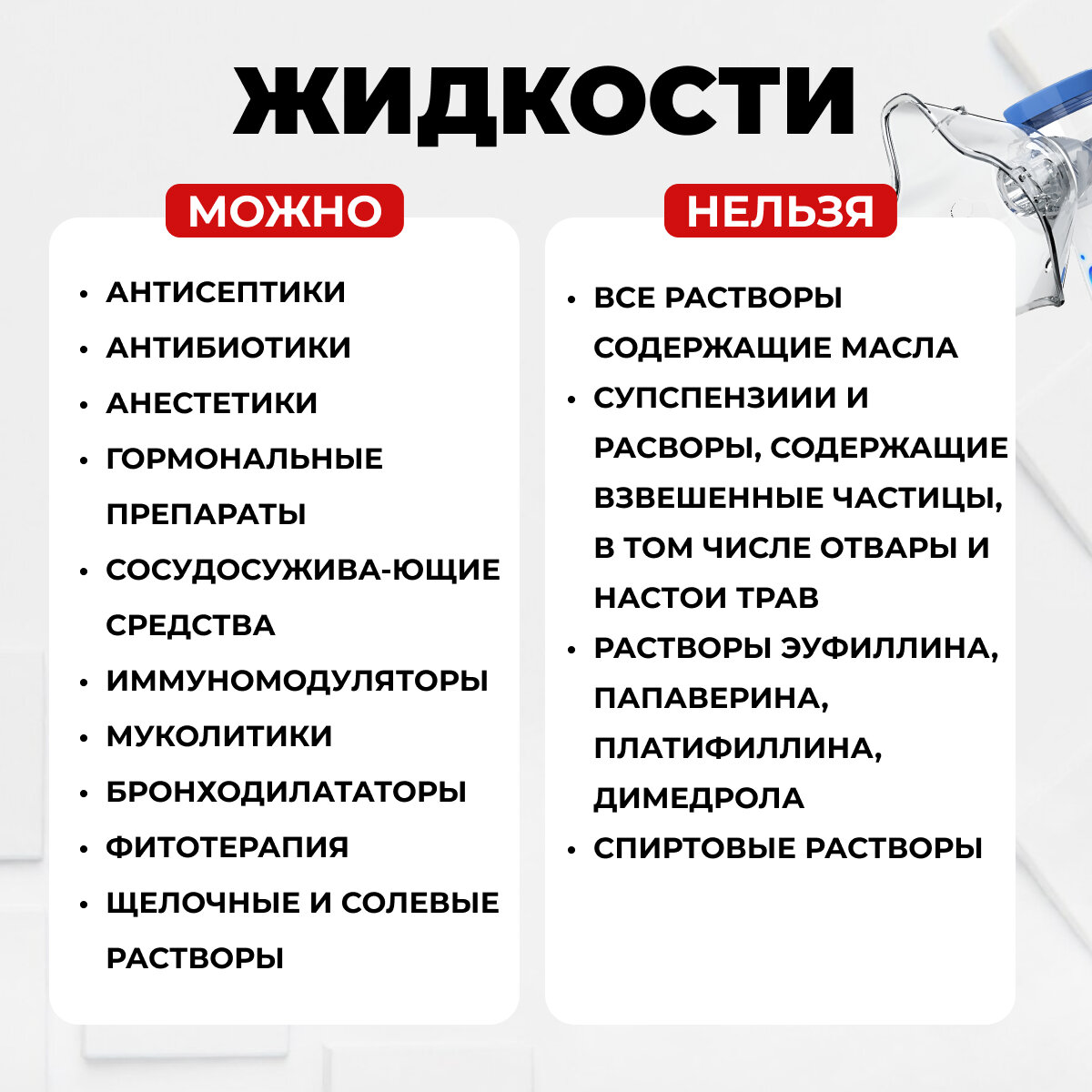 | Насадки в комплекте | маска взрослая / маска детская / мундштук |