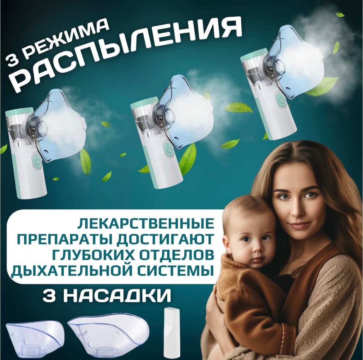 Ингалятор небулайзер портативный с тремя насадками для детей и взрослых интересное: