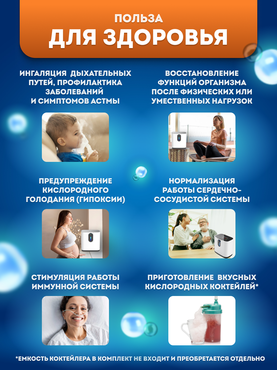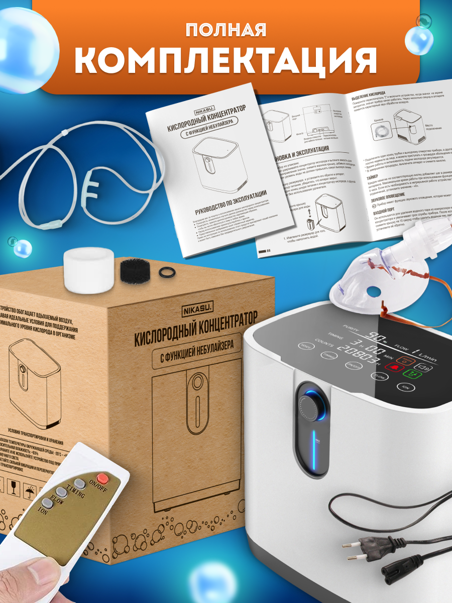 | Подробная комплектация | Кислородный концентратор, пульт ДУ, кислородная трубка с канюлей, маска |