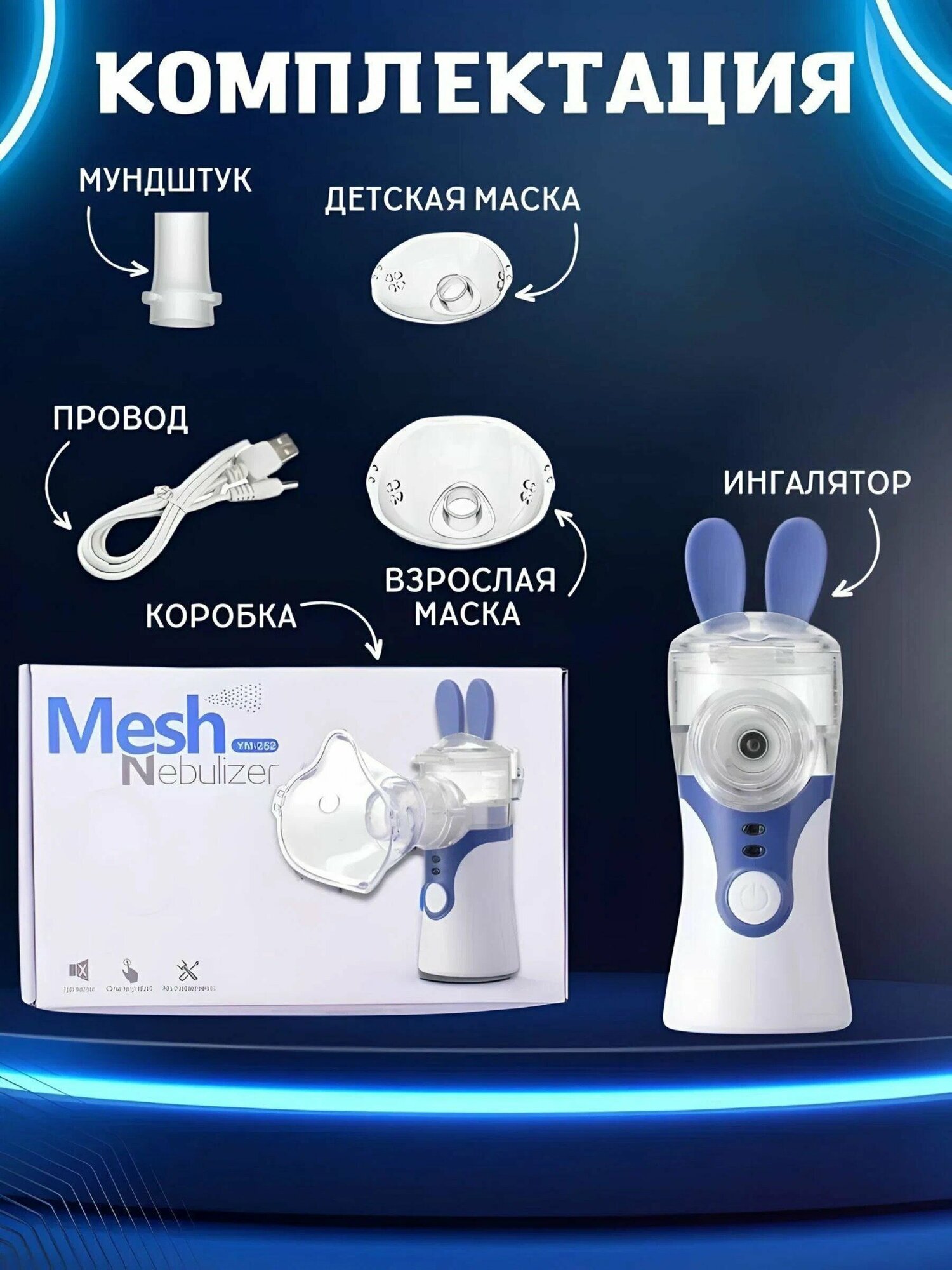 | Насадки в комплекте | маска взрослая / маска детская / мундштук |