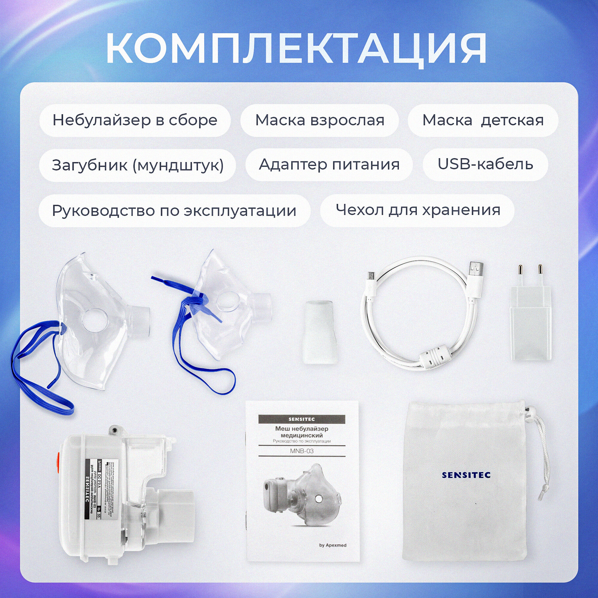 Ингалятор небулайзер меш Sensitec MNB-03, портативный, беспроводной интересное: