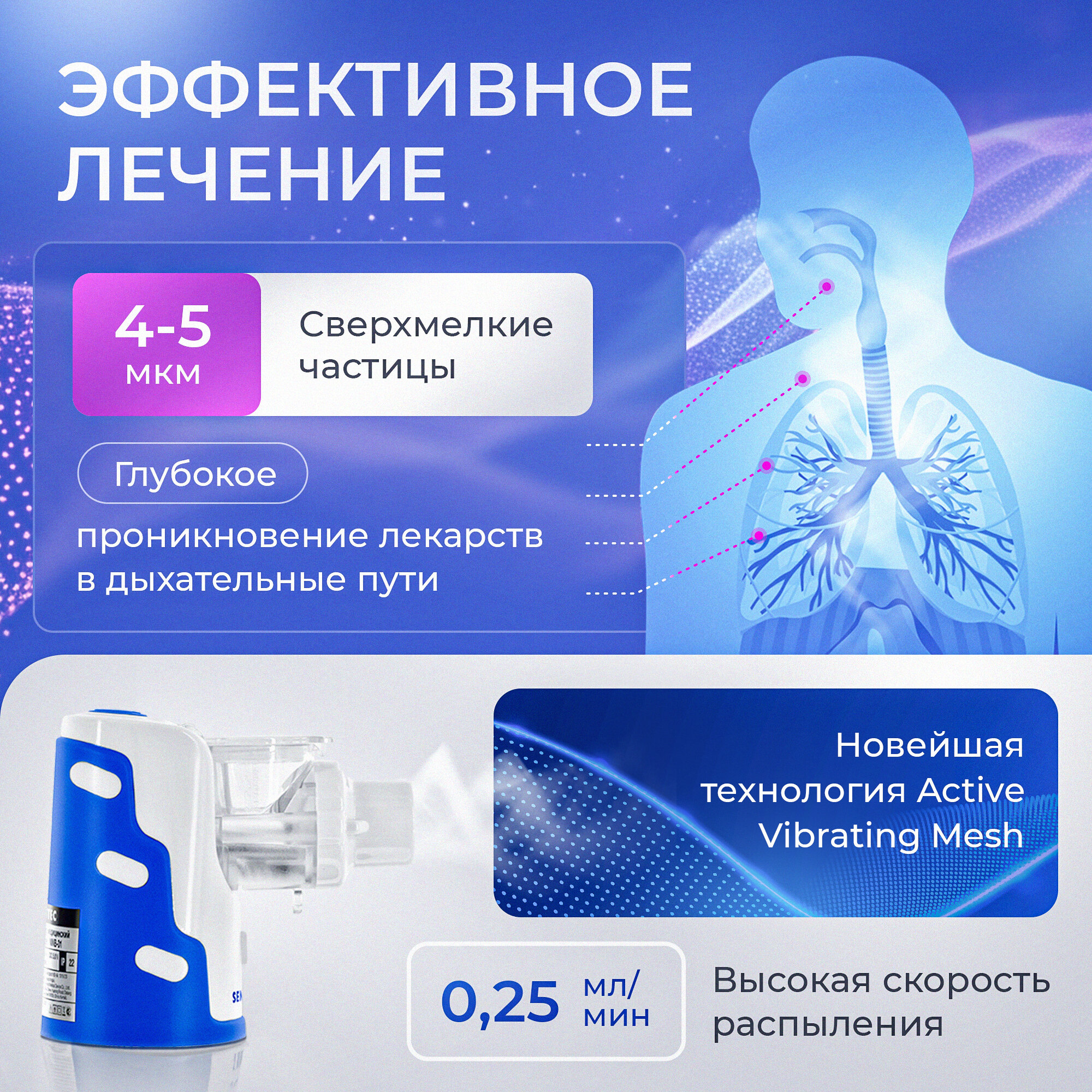 Ингалятор небулайзер меш Sensitec MNB-01, портативный, беспроводной интересное: