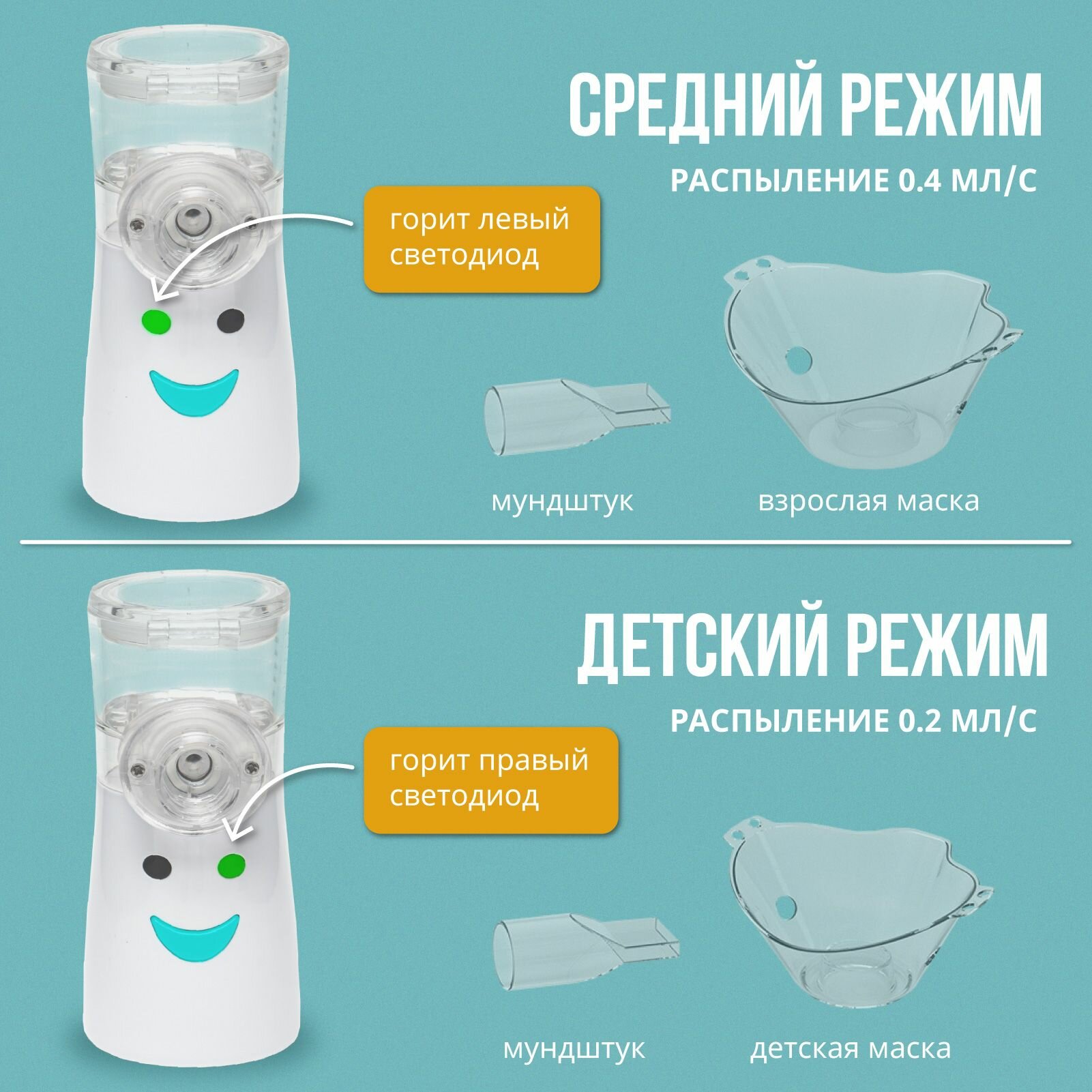 Бесшумный детский небулайзер портативный с 3 насадками. интересное:
