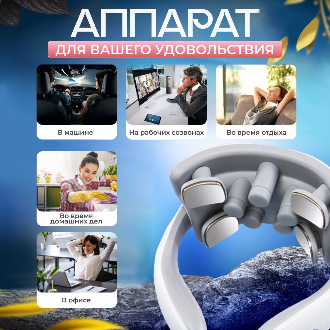Массажер с вибронасадками и подогревом, Лимфодренажный массажер для шеи и плеч, 6 программ, 4 головки интересное:
