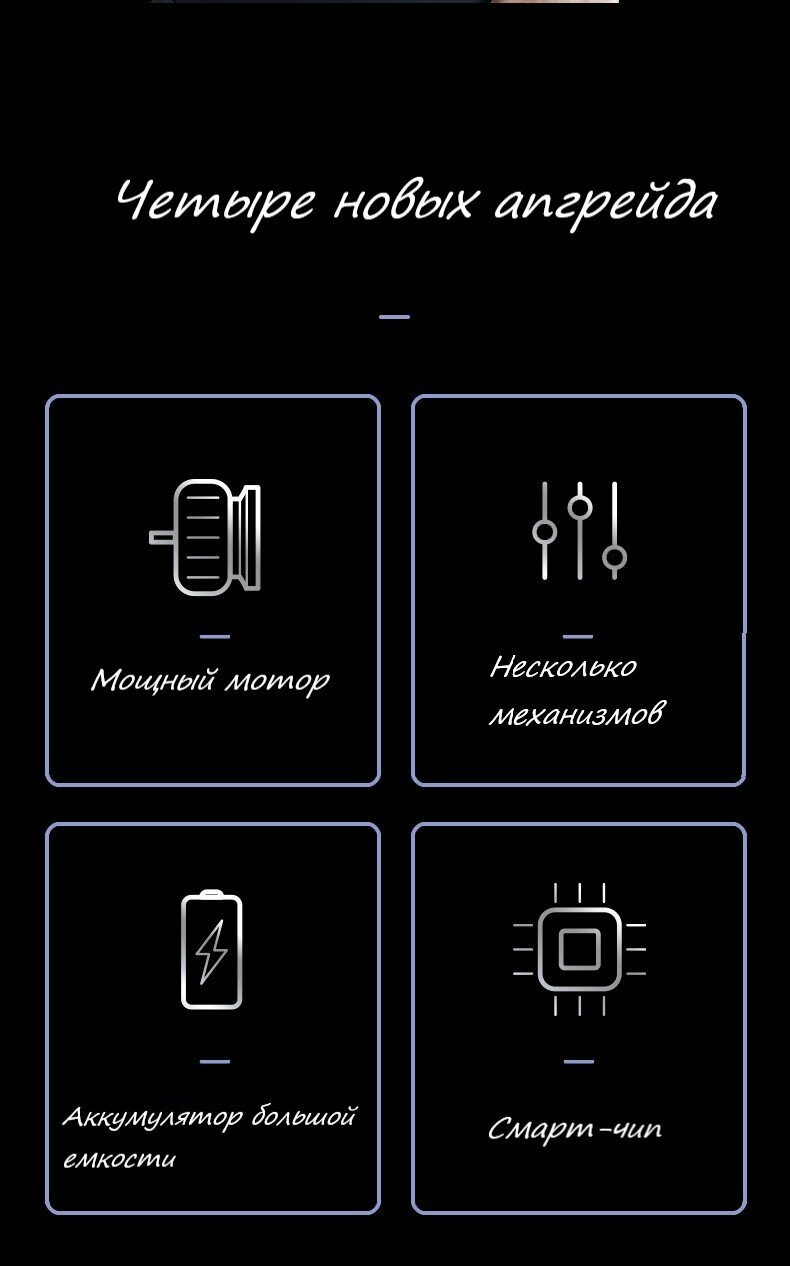 | Особенности | беспроводной / дисплей / индикация заряда / подсветка / противоскользящее покрытие / регулировка интенсивности массажа / регулировка скорости / съемные насадки / съемный чехол |