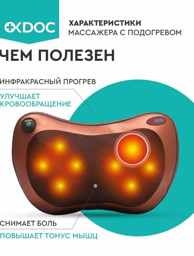 Электрический массажер "OKDOC" 6-в-1 с подогревом для шеи, плеч, спины и тела, массажная подушка