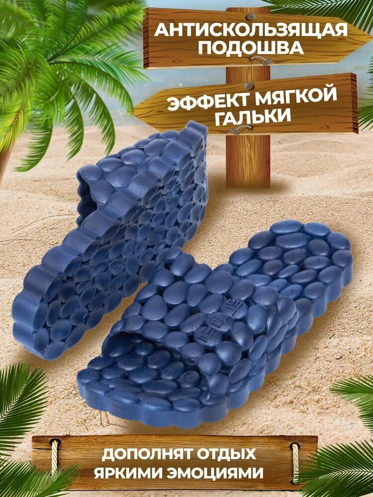 Массажные тапочки шиацу Галька, рефлекторные, темно-синие, р.42-43