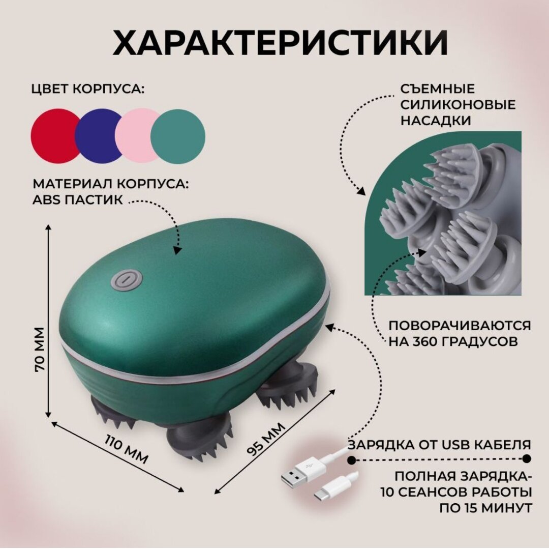 | Зона массажа | голова / декольте / лицо / плечи / шея |