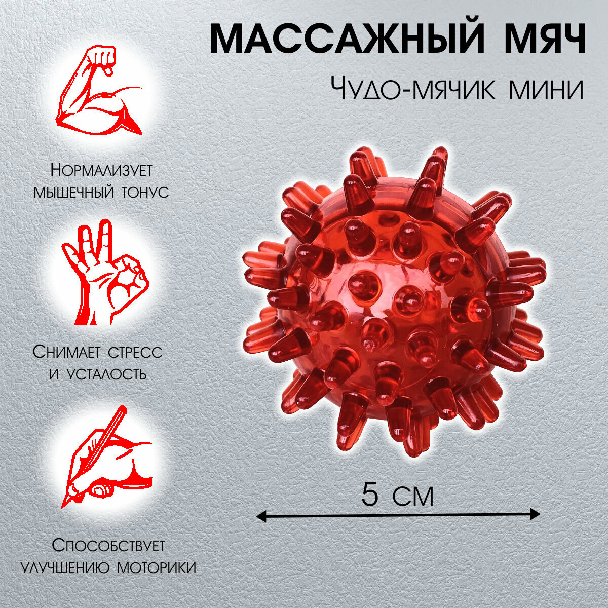 Массажный мячик для массажа тела, рук и ног Чудо мячик мини красный интересное: