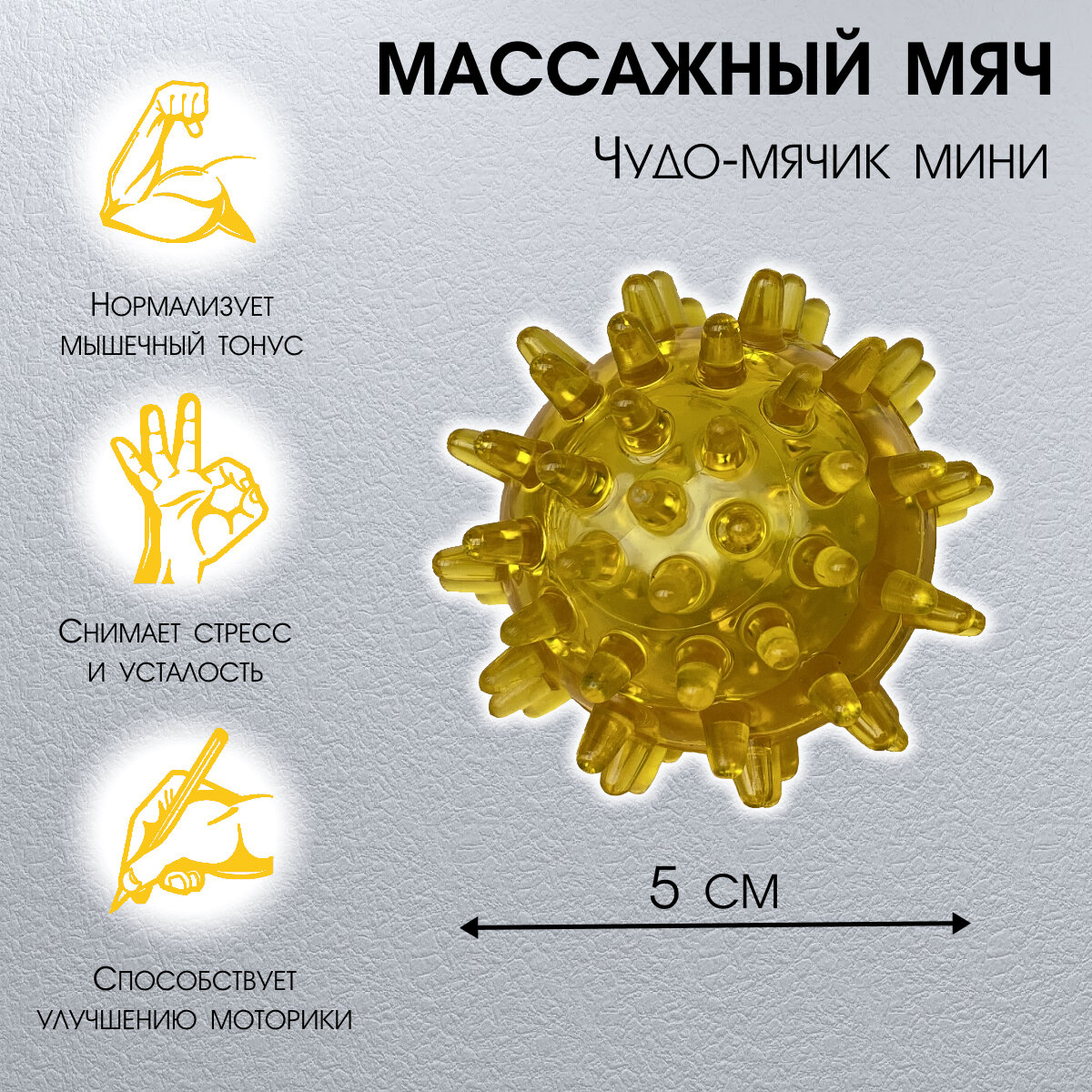 Массажный мячик для массажа тела, рук и ног Чудо мячик мини желтый интересное: