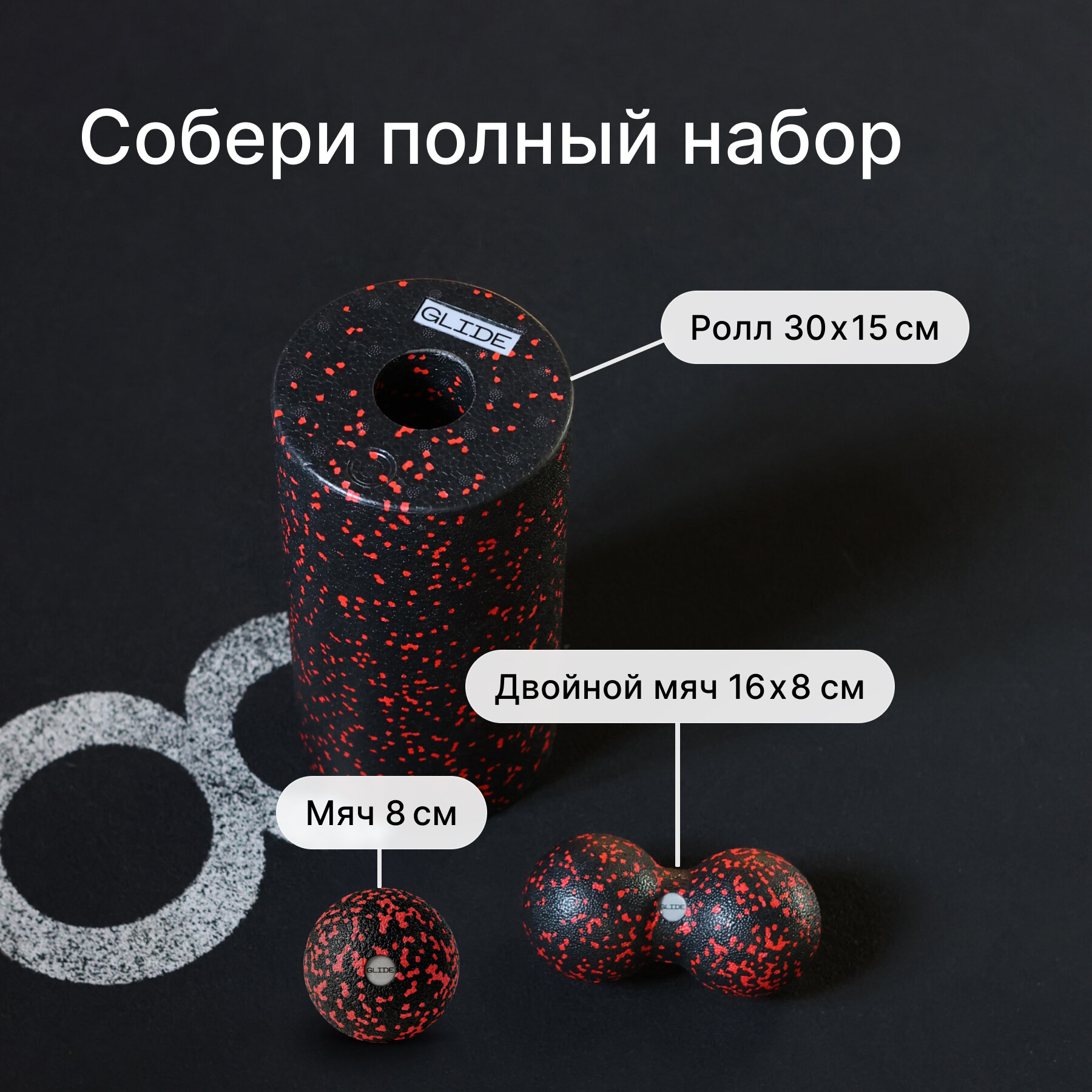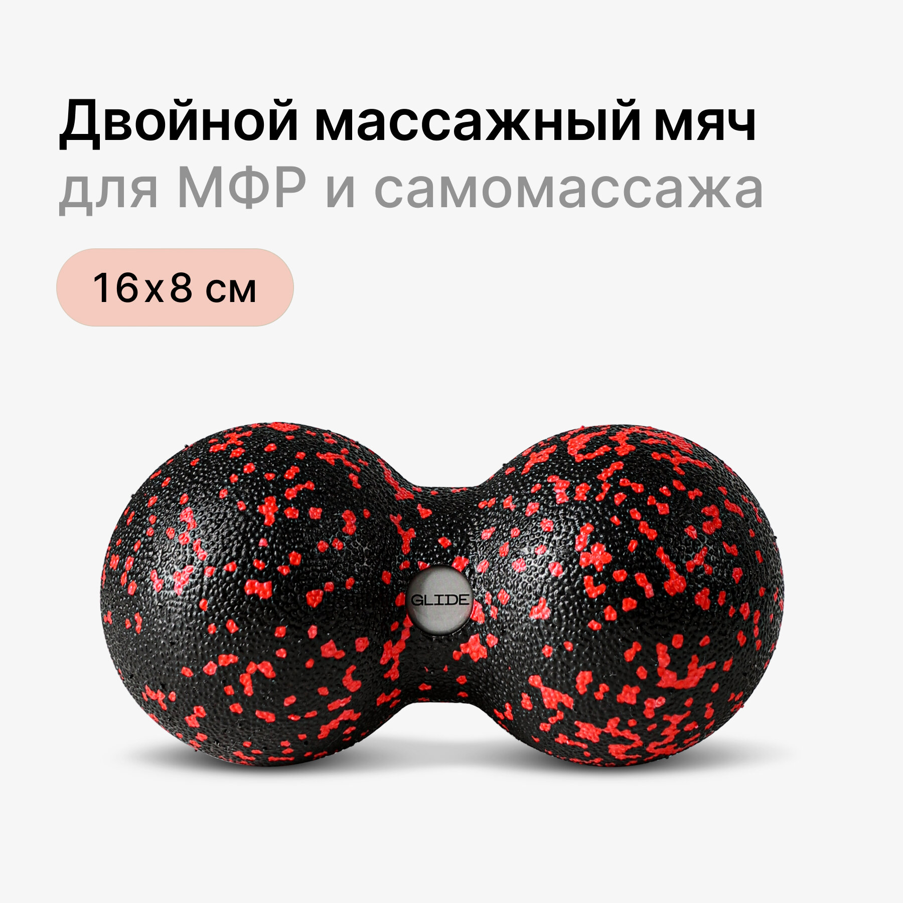 Купить Мячик массажный двойной Glide Roll для пилатеса и йоги. Масажный мяч для МФР, ролик массажный, красный, черный, 16х8см