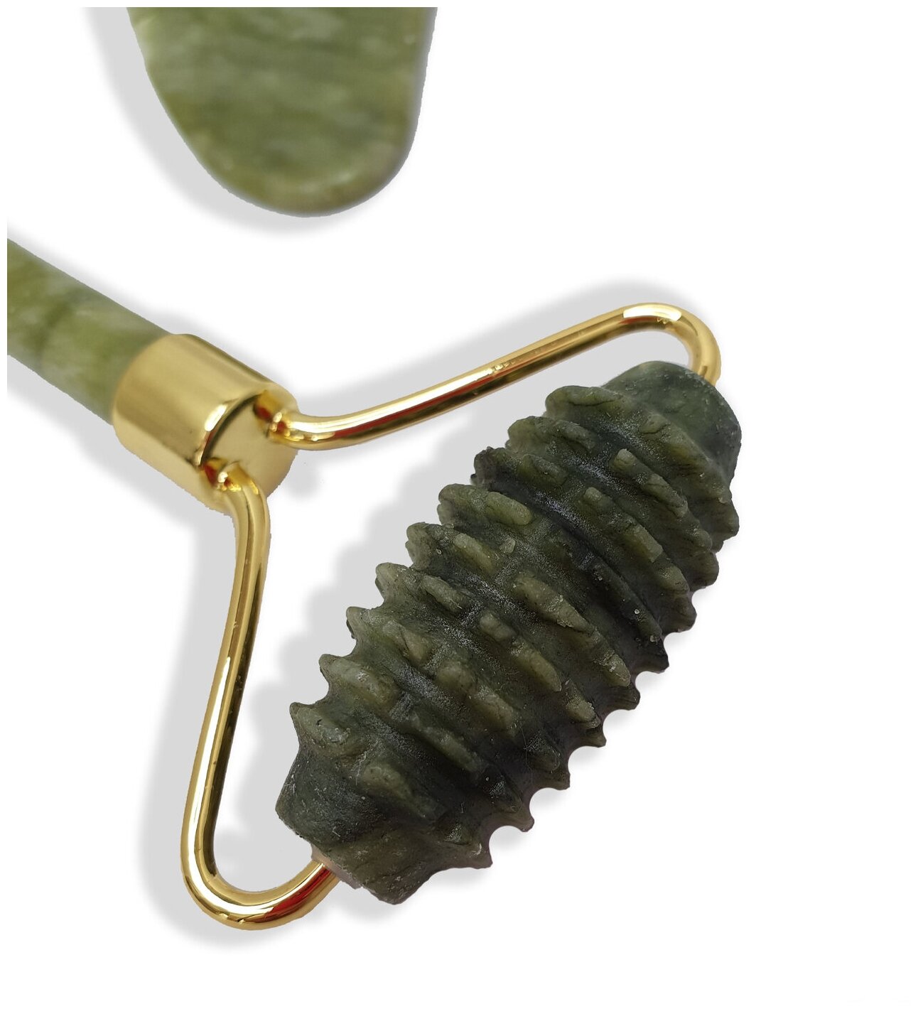 Нефритовый ролик массажер для лица, скребок гуаша в подарочной упаковке. Martinson интересное: