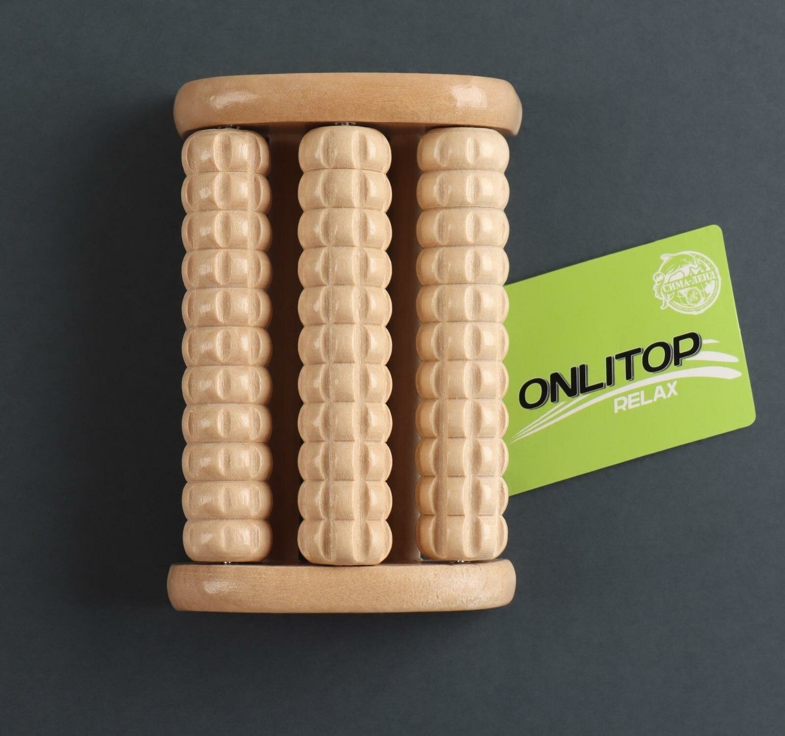 ONLITOP Массажёр для ног «Барабан», 3 ролика с шипами, деревянный, 11,5 × 7,7 × 3,5 см