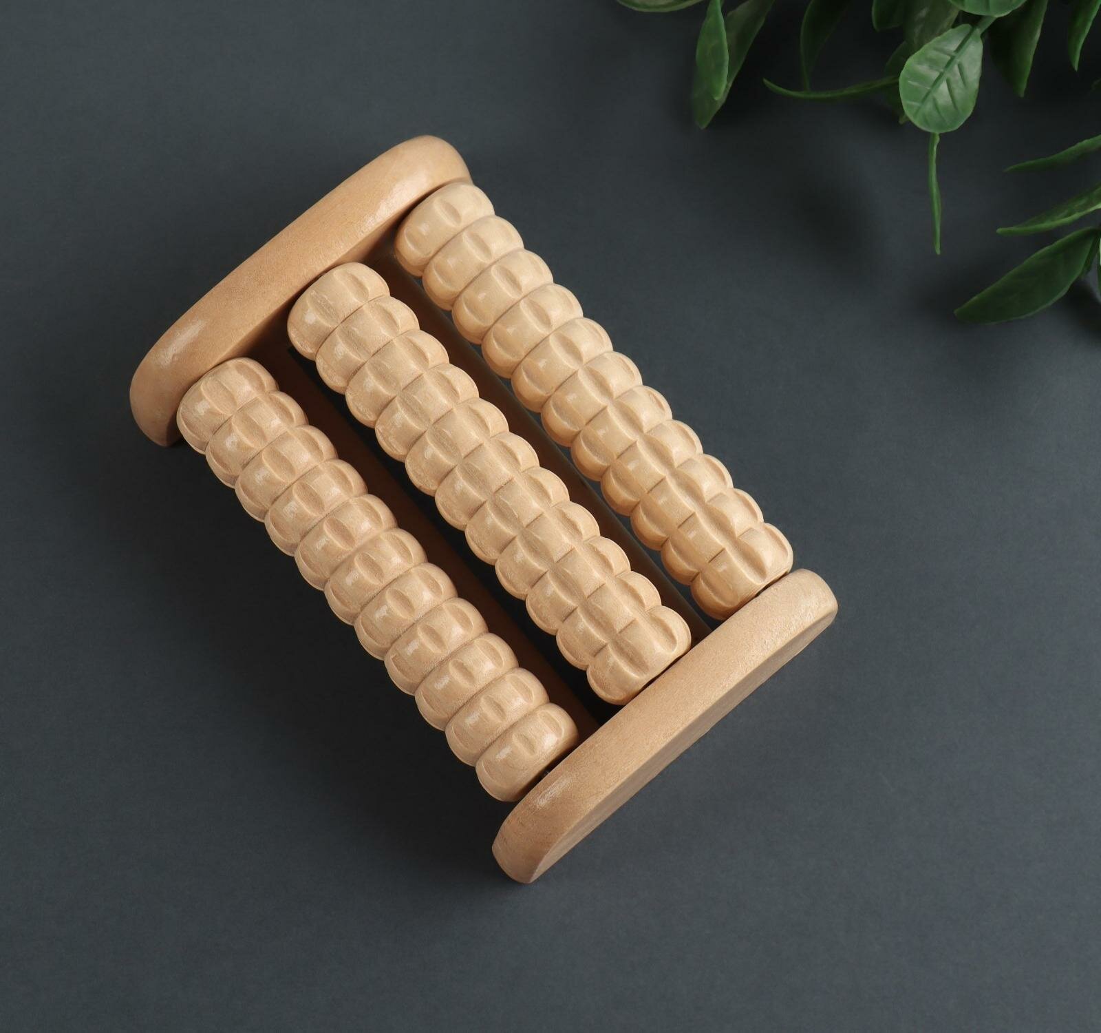 Купить Массажёр для ног «Барабан», 3 ролика с шипами, деревянный, 11,5 × 7,7 × 3,5 см