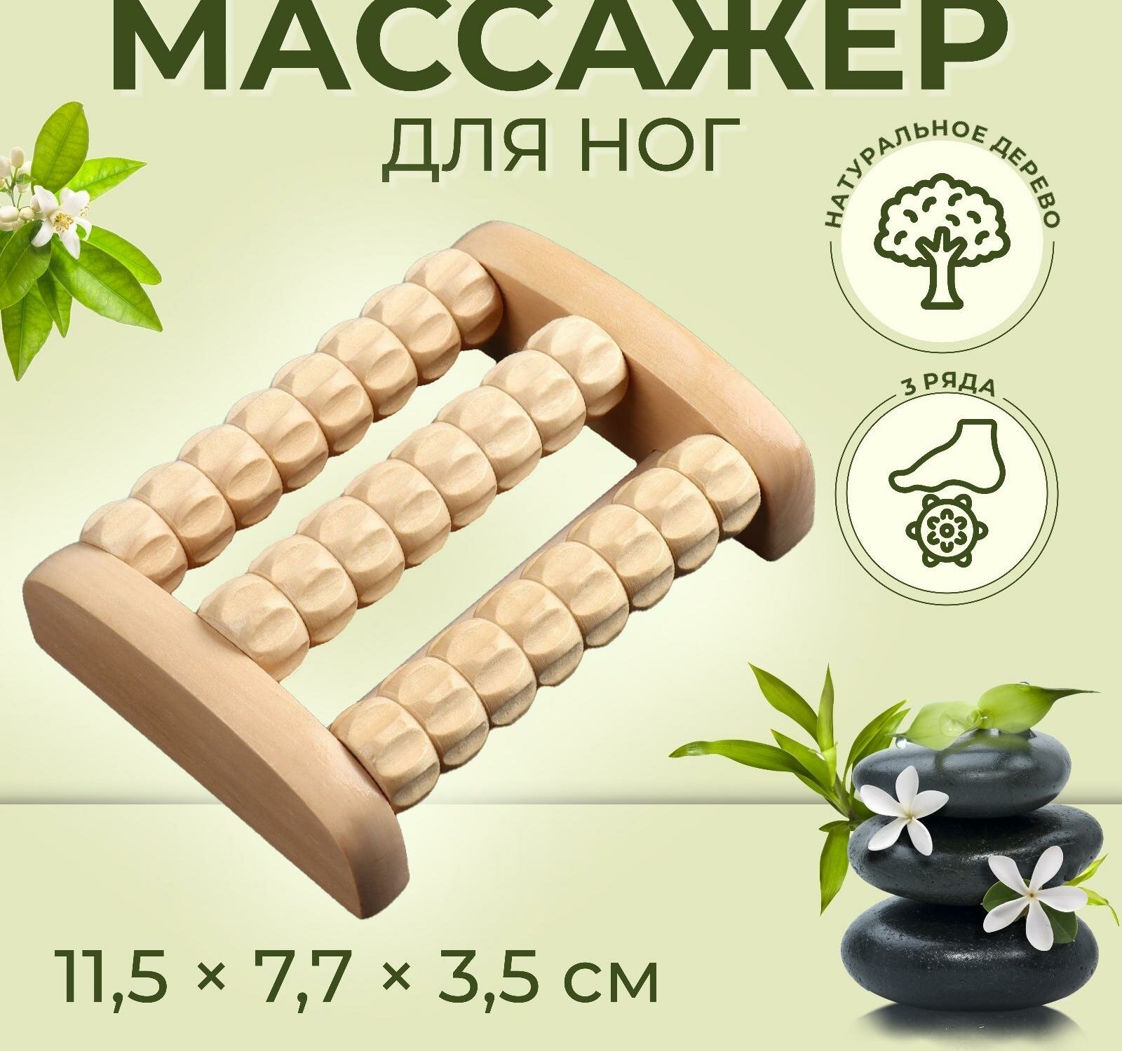 Массажёр для ног «Барабан», 3 ролика с шипами, деревянный, 11,5 × 7,7 × 3,5 см интересное: