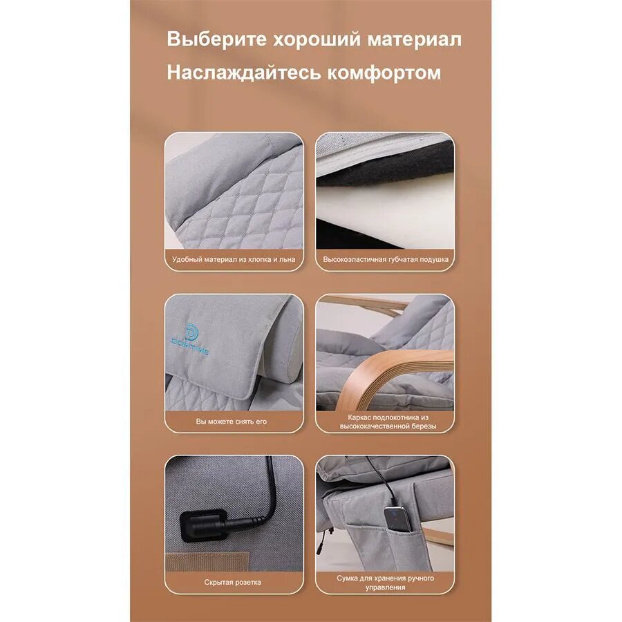 Массажное кресло-качалка DOMTIME цвет бежевый, массаж шейного отдела, спины и области таза с прогревом, 10 режимов, с пультом ДУ, питание от сети.