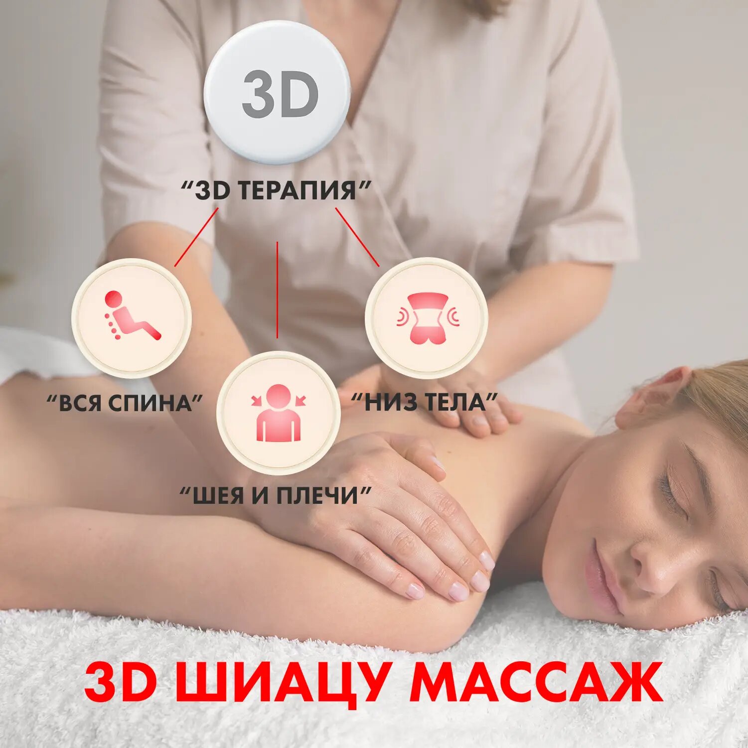 | Зона массажа | бедра / голени / ноги / плечи / поясница / руки / спина / стопы / шея / ягодицы |