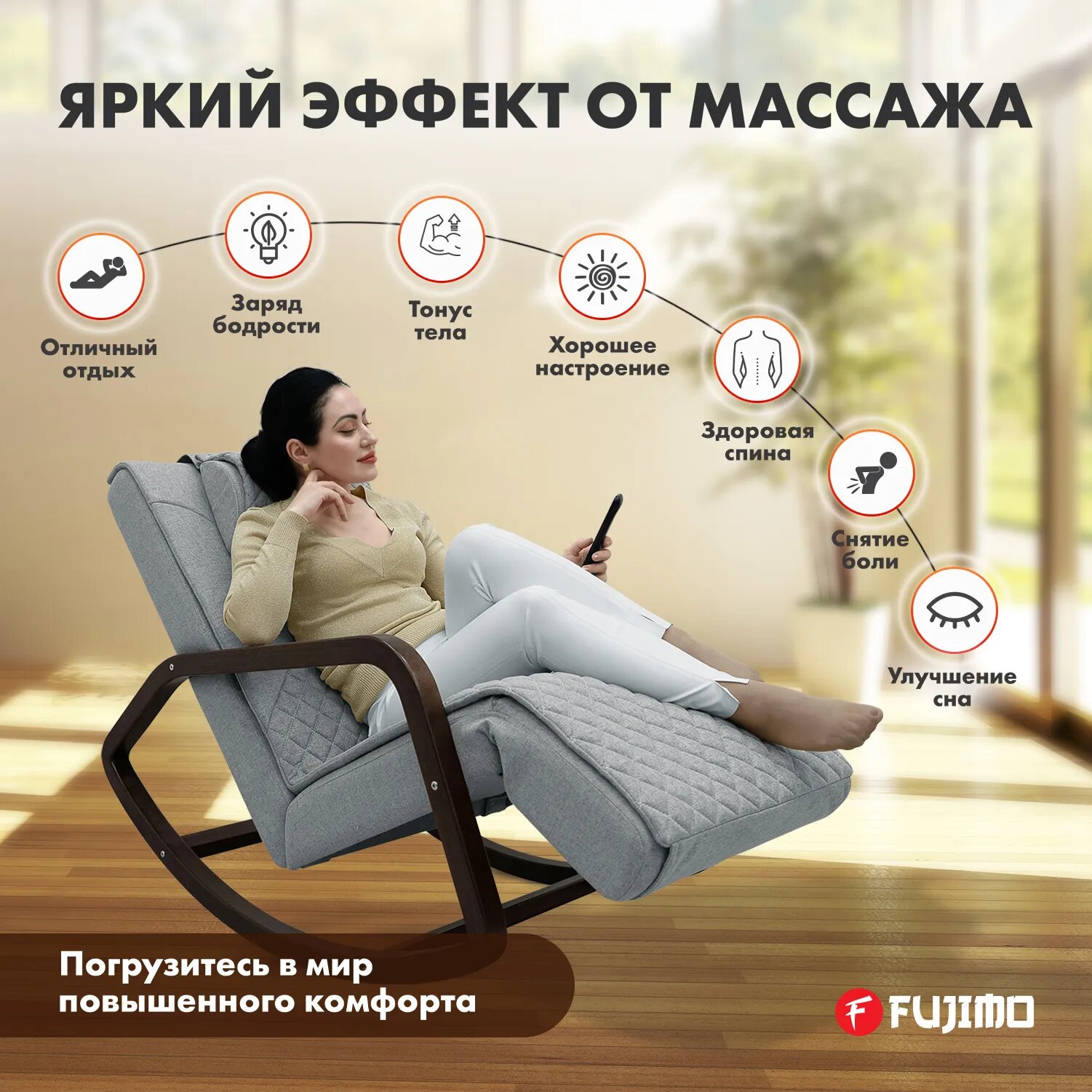 Массажное кресло-качалка FUJIMO "SOHO NEXT", с пультом ДУ, 3D массаж, цвет серый