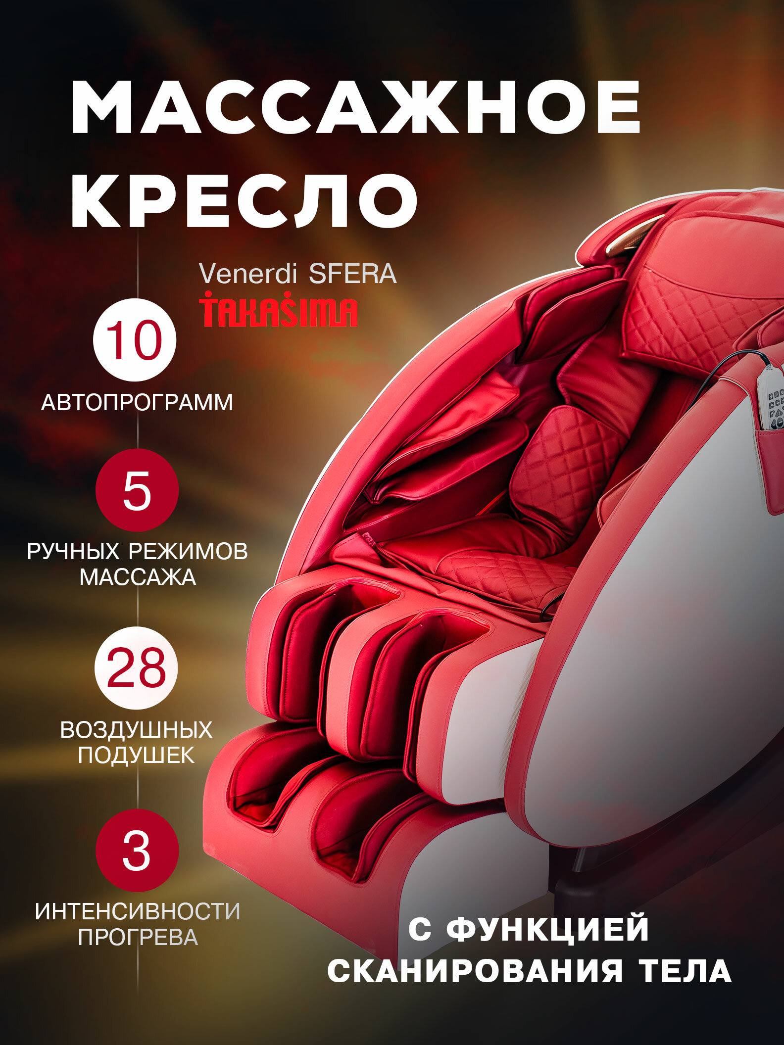 Массажное кресло MS-615 красное кресло массажер для спины Takasima интересное: