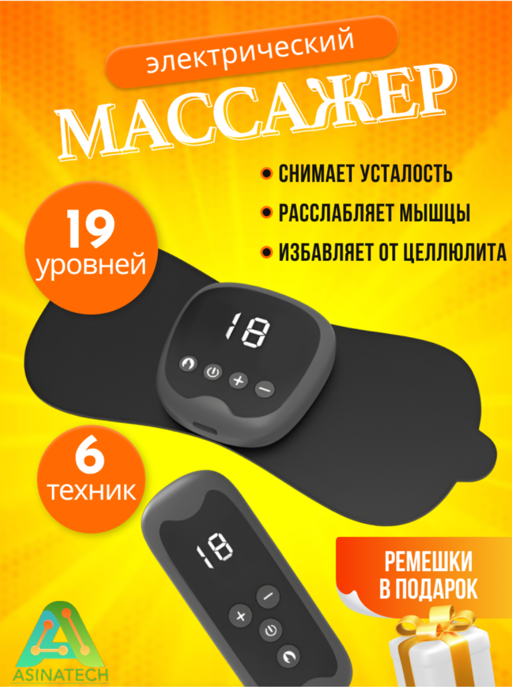 Купить Миостимулятор с подогревом для мышц всего тела / Массажер для похудения / Компактный EMS аппарат для пресса, от боли в шее и спине / Миостимулятор