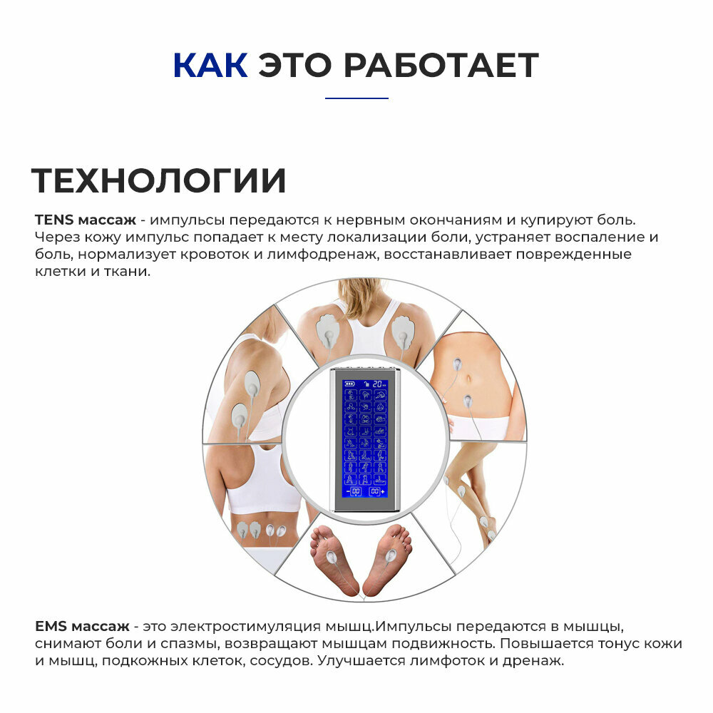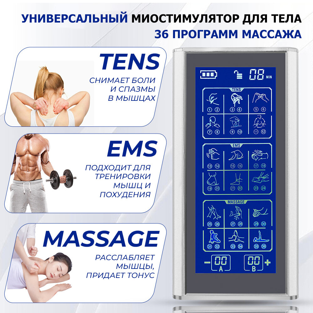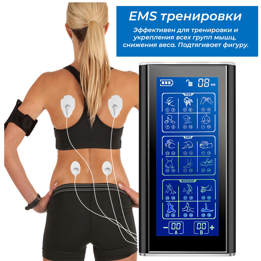 Массажер миостимулятор для тела, EMS-450, 2 канала, с EMS и TENS технологией, 36 режимов массажа, беспроводной интересное: