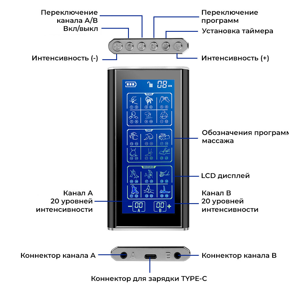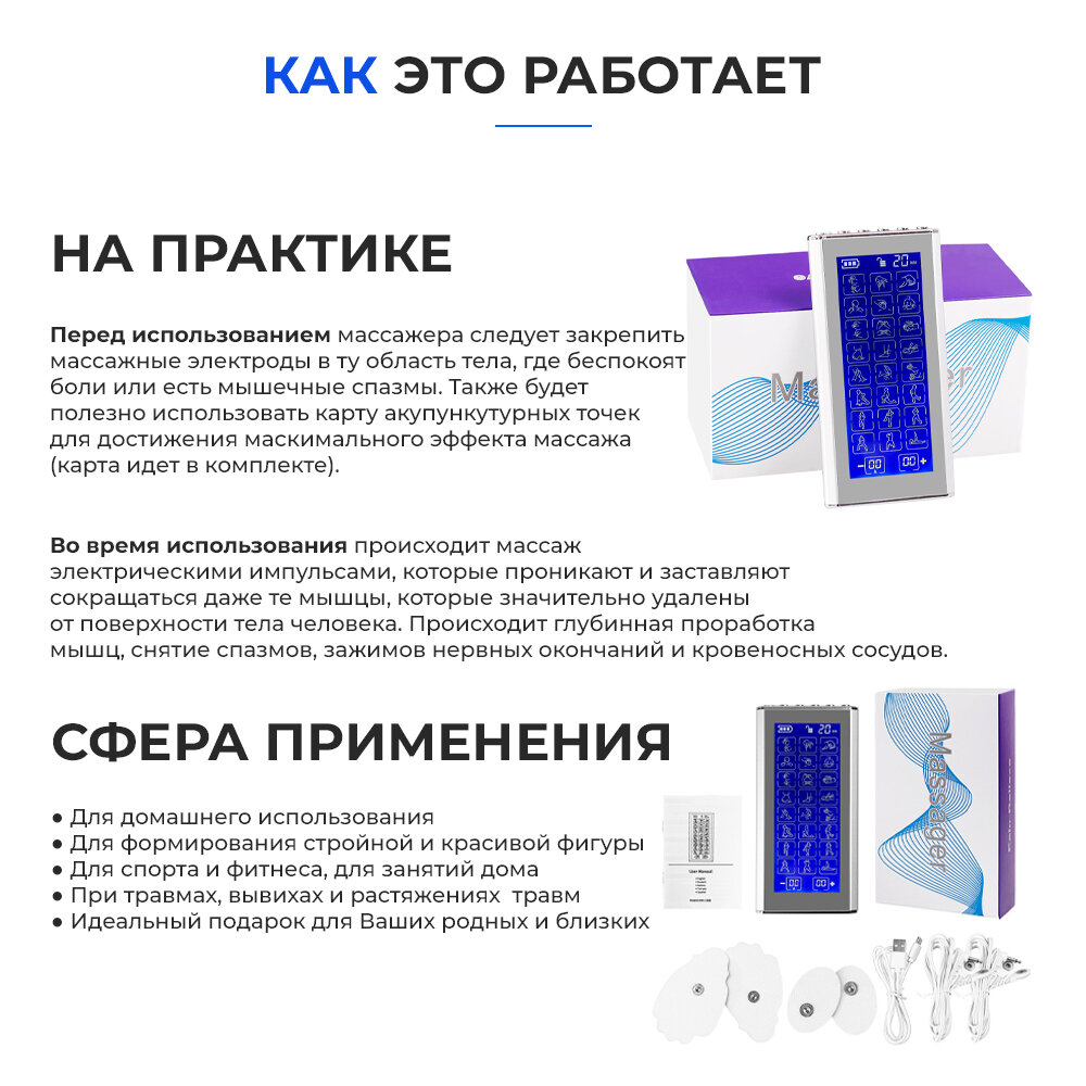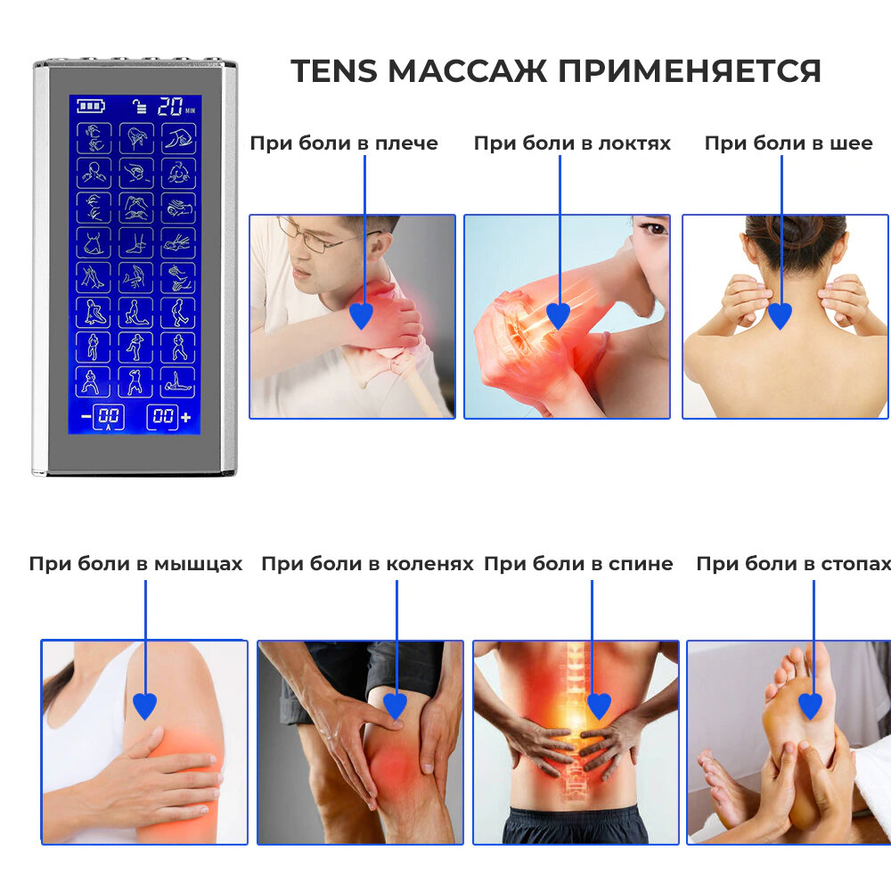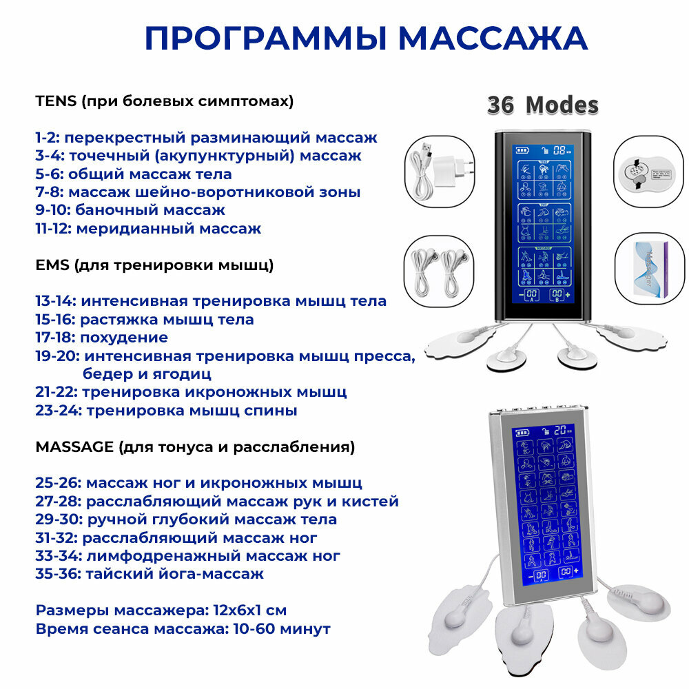 Массажер миостимулятор для тела, EMS-450, 2 канала, с EMS и TENS технологией, 36 режимов массажа, беспроводной интересное: