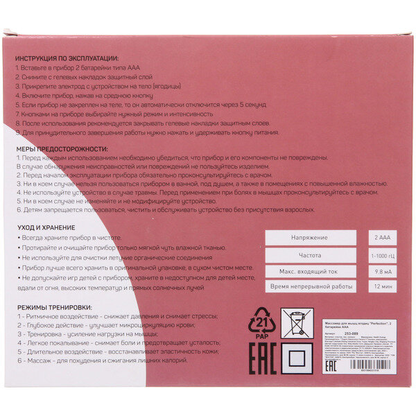 Массажер для мышц ягодиц «Perfection» (миостимулятор), 2 батарейки ААА интересное: