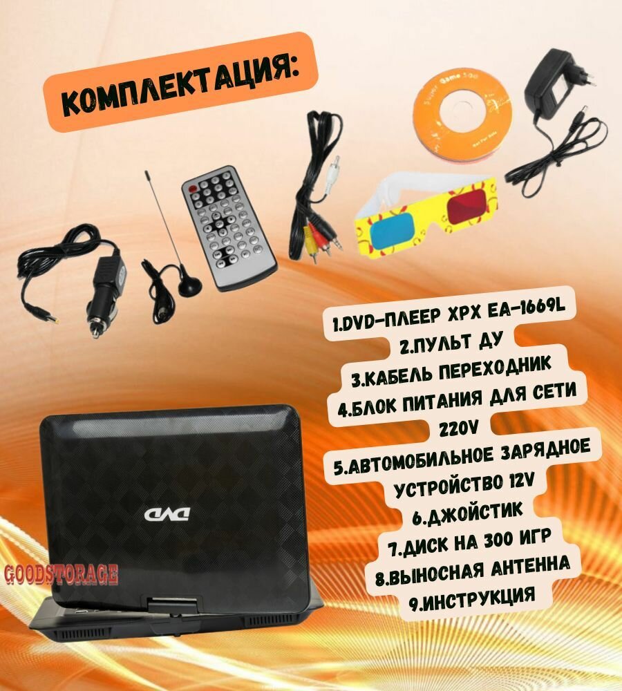 Портативный DVD плеер 15,6" дюйма XPX EA-1669L TV/FM/Game интересное: