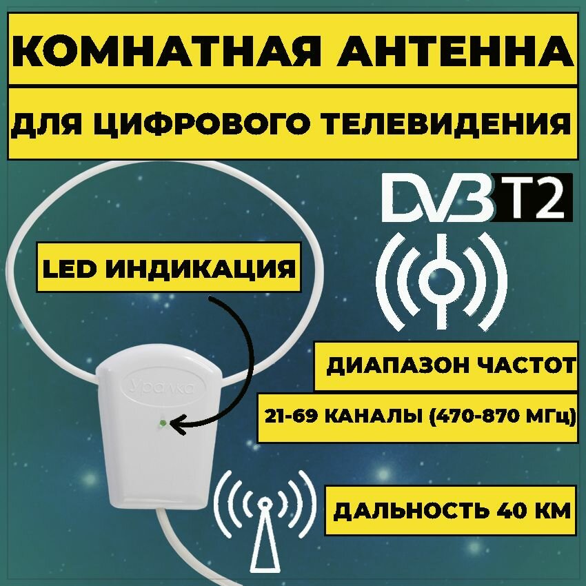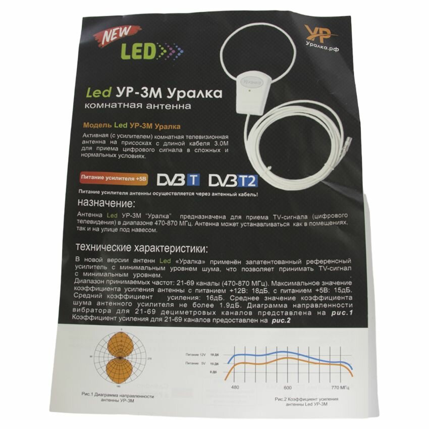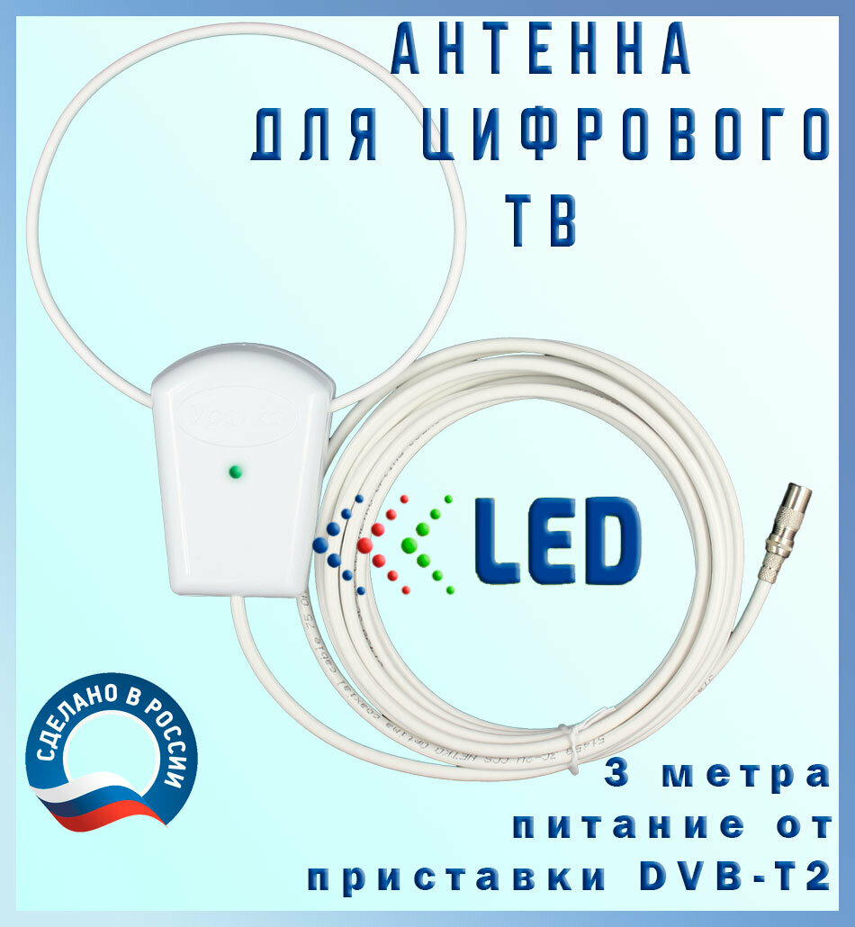 Антенна активная для цифрового DVB-T2 ТВ, "Уралка 3 метра" с присоской интересное: