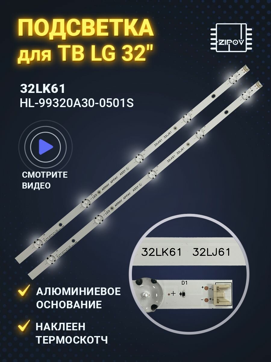 Подсветка для ТВ LG 32LJ510U 32LJ610V 32LJ610U 32LJ622V / 32LK61 HL-99320A30-0501S-01 A2 (комплект 2шт) интересное: