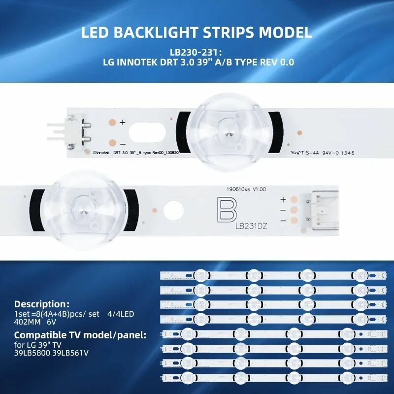 Подсветка для ТВ LG Innotek DRT 3.0 39 A type Rev 0.0 130820 B type Rev00 39LY 39LB интересное: