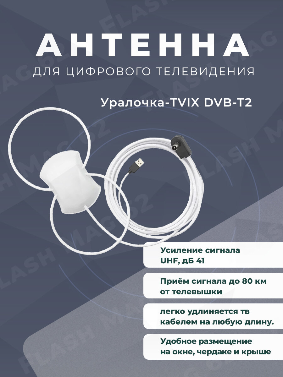 Антенна для цифрового ТВ комнатная Уралочка-TVIX двойная петля 5в. 3м USB интересное: