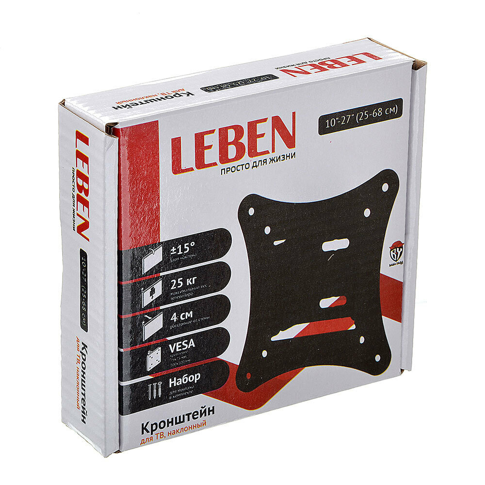 LEBEN Кронштейн для ТВ наклонный, 10"-27", до 25кг, 75x75 до 100x100мм интересное: