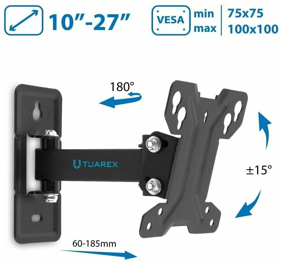 Кронштейны для техники Kromax Кронштейн настенный Tuarex ALTA-108 10"-27" (наклон +15/-15°, поворот 180°, до 20 кг, черный) интересное: