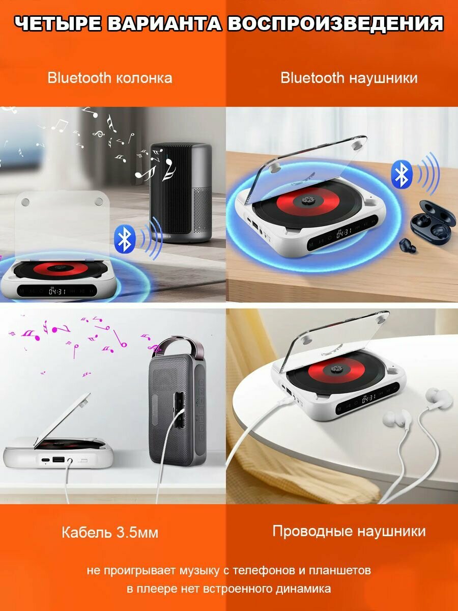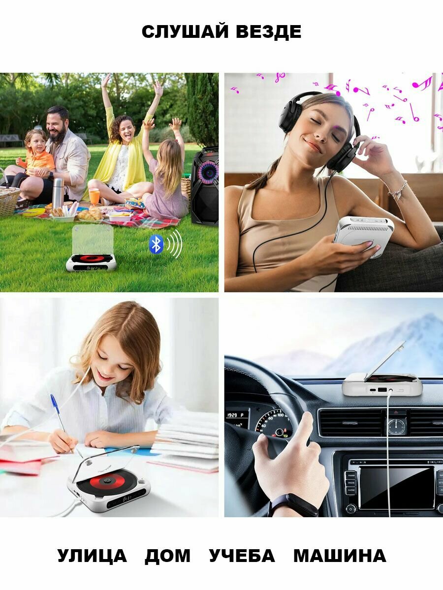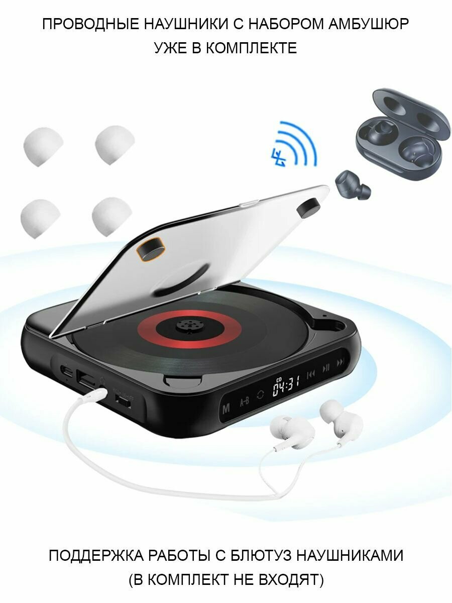 CD MP3 плеер для дисков музыки с bluetooth и наушниками интересное: