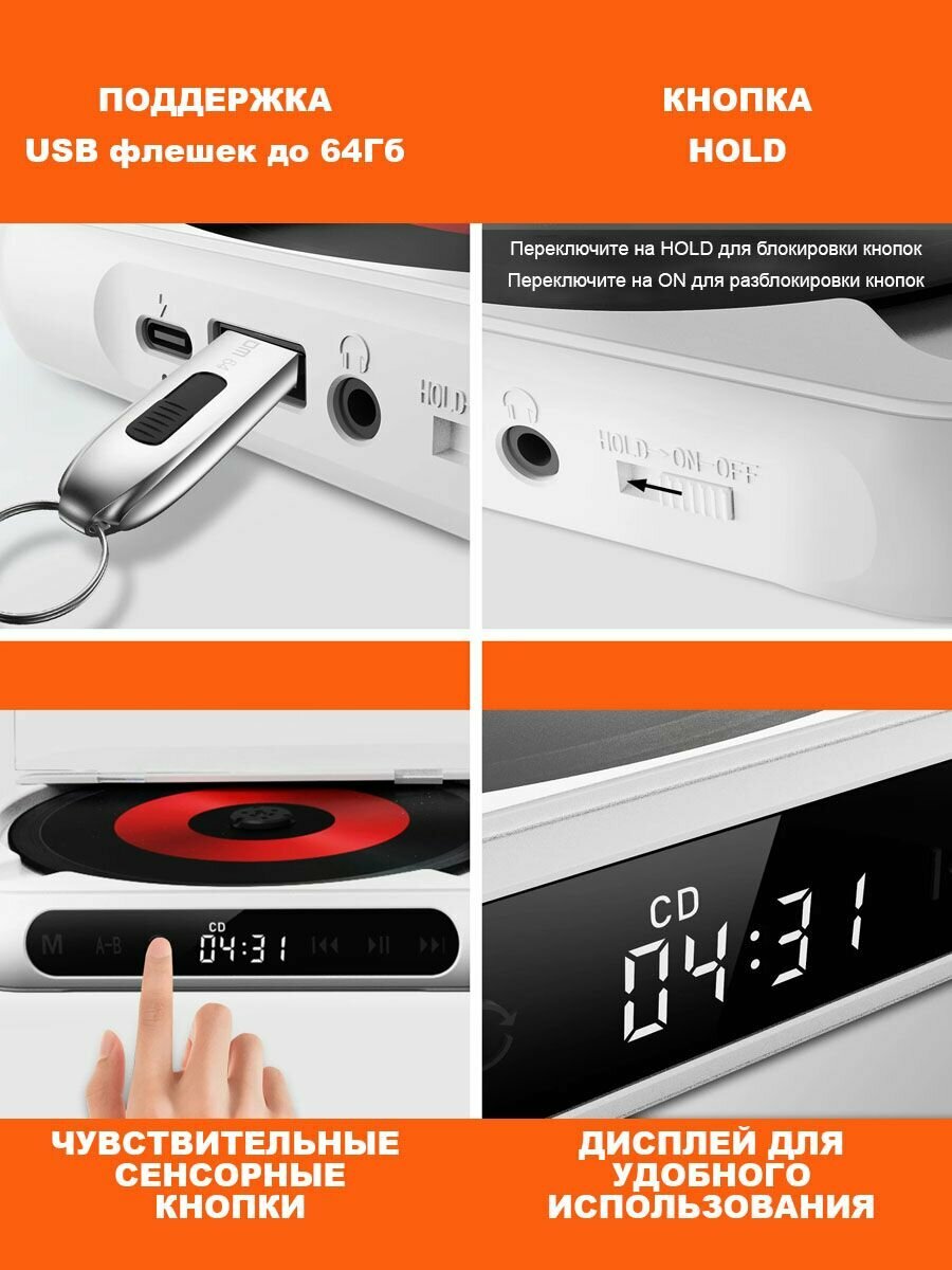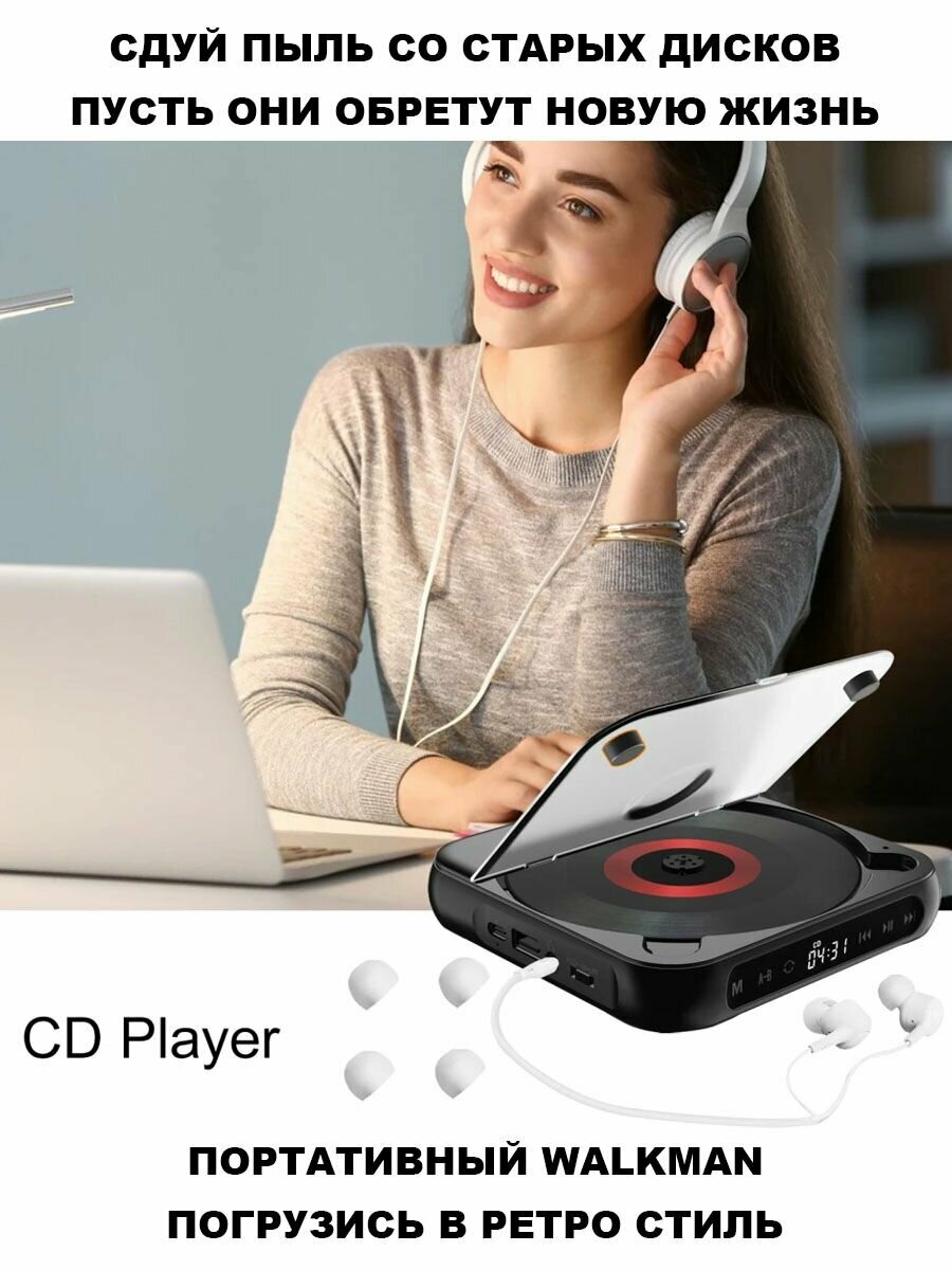 Купить CD MP3 плеер для дисков музыки с bluetooth и наушниками