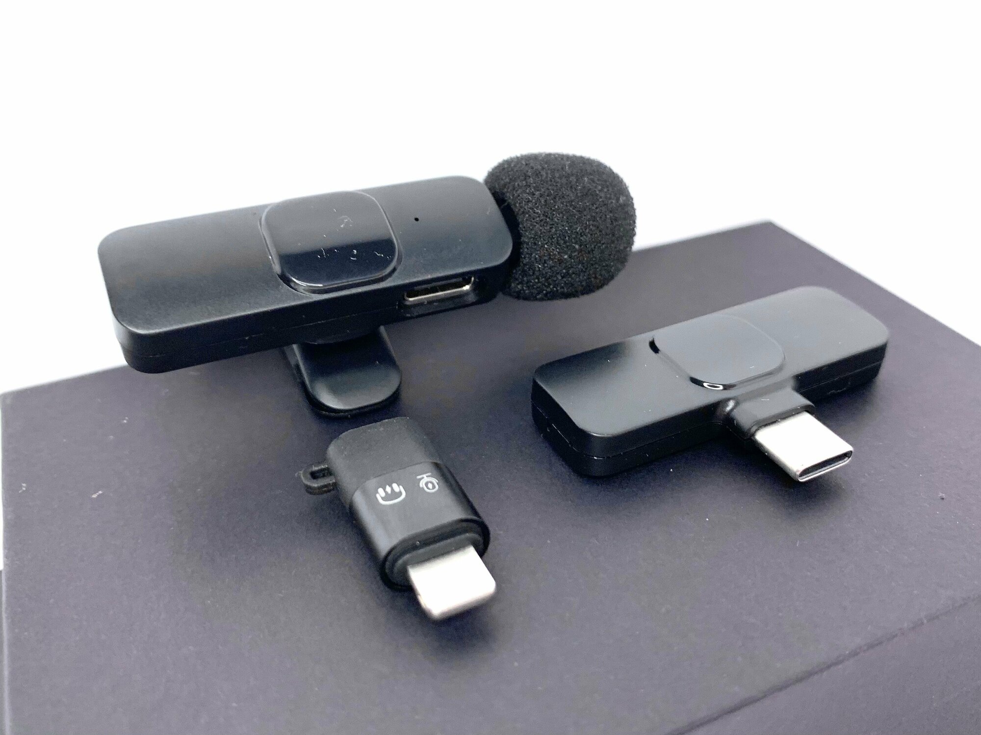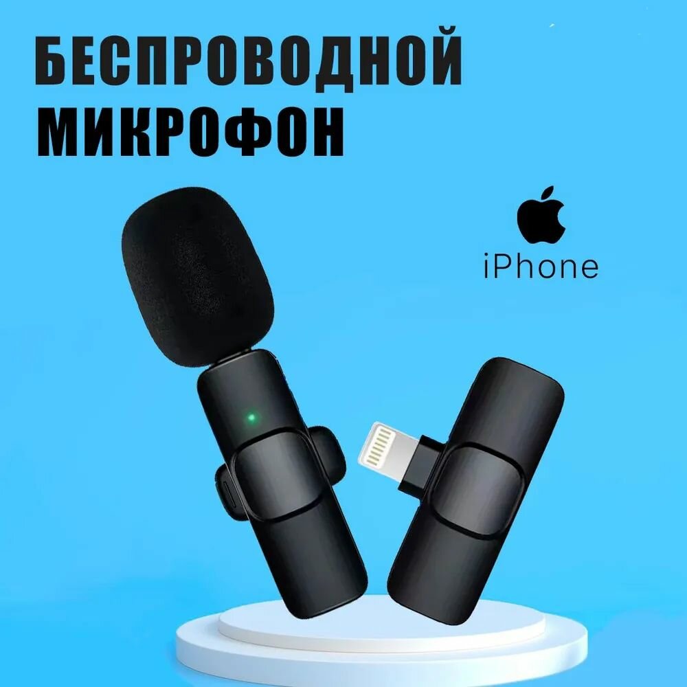 Микрофон петличный беспроводной, с шумоподавлением, петличка, для мобильного телефона, разъем Lightning, для Iphone, черный, 2шт
