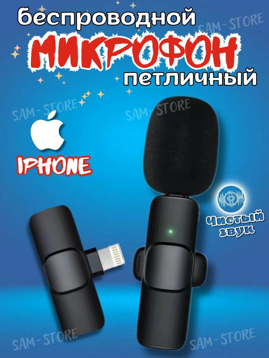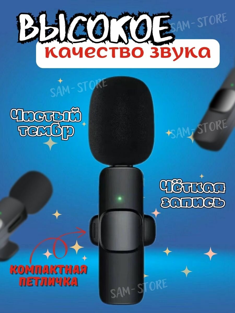 Микрофон петличный беспроводной Microphone K9, iPhone петличка беспроводной, черный. интересное: