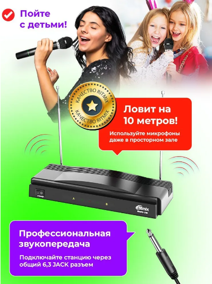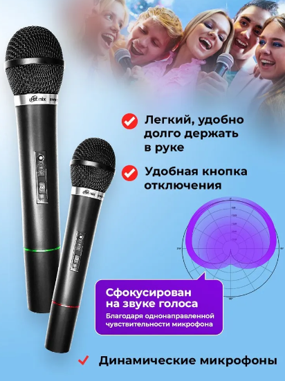 Беспроводная микрофонная система RITMIX RWM-210, 2 микрофона интересное: