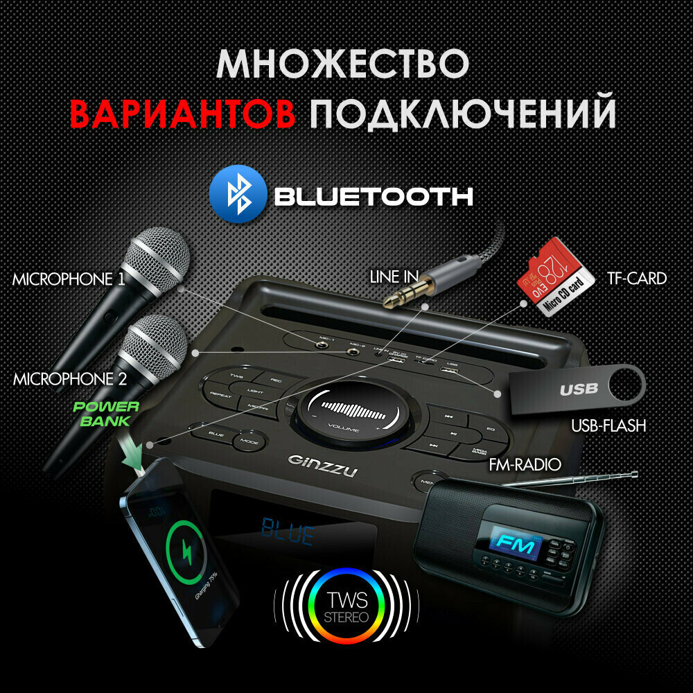 Музыкальный центр Ginzzu GM-205 интересное: