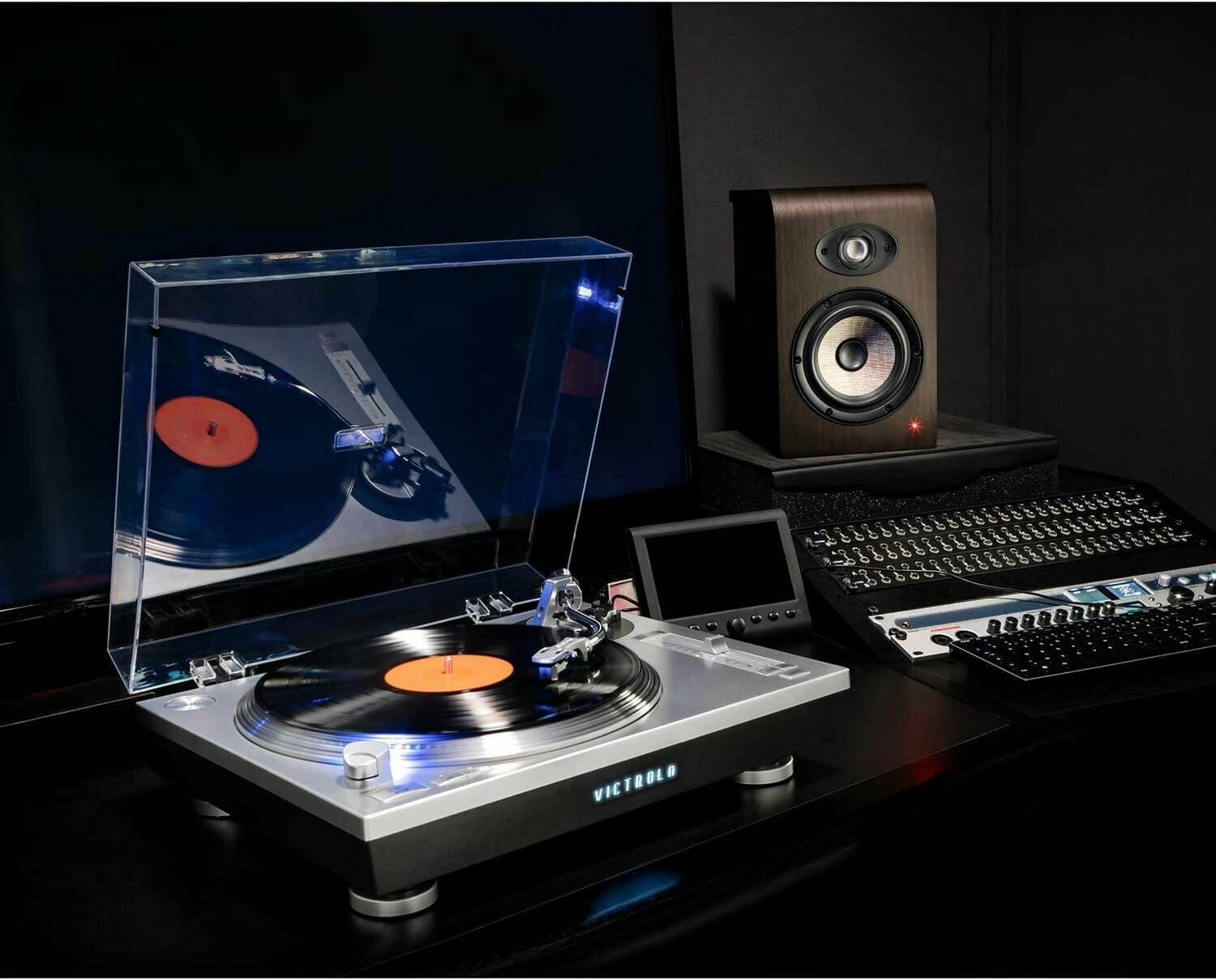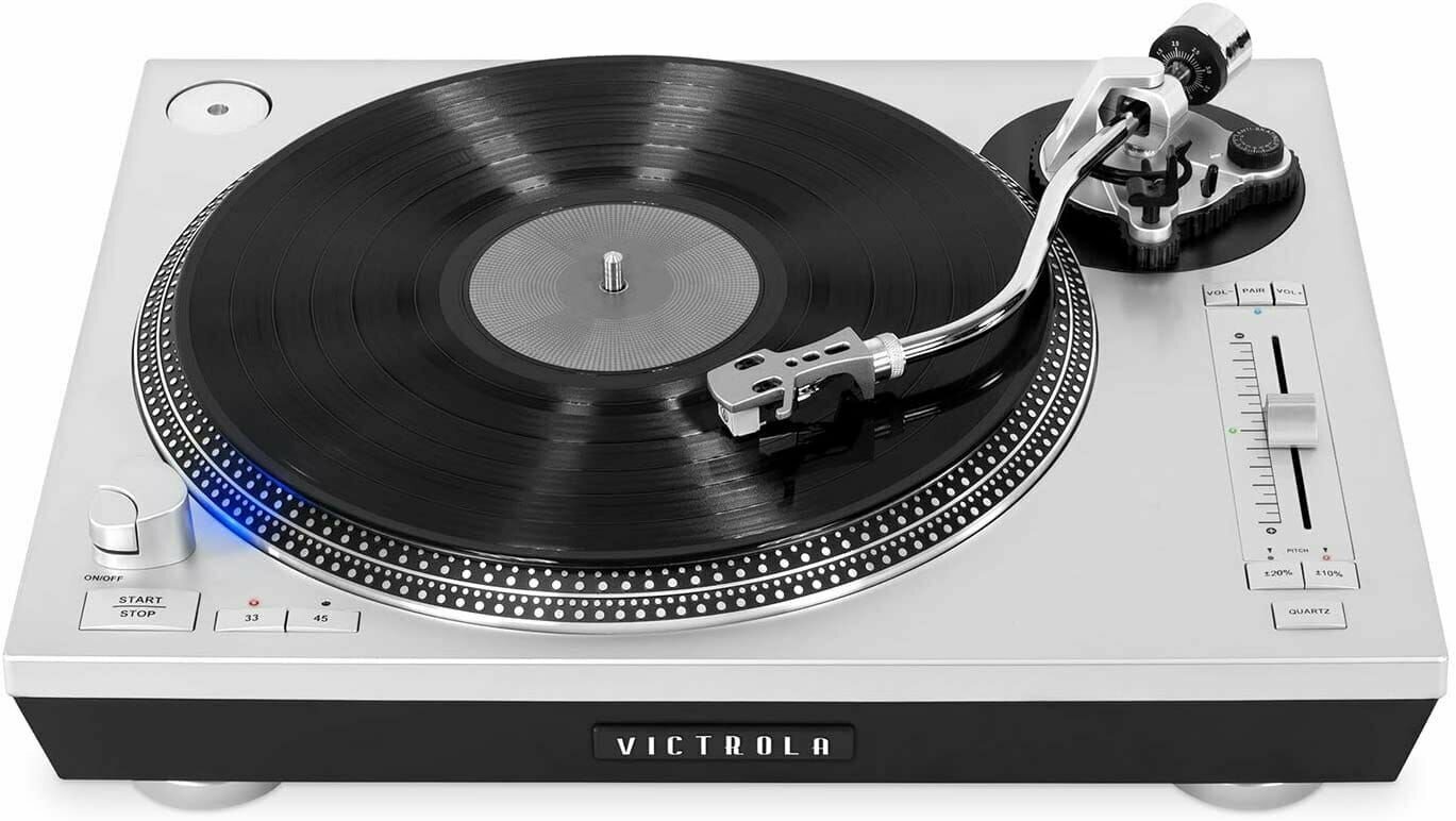 Проигрыватель виниловых пластинок с Bluetooth трансмиттером Victrola VPRO-2000 интересное: