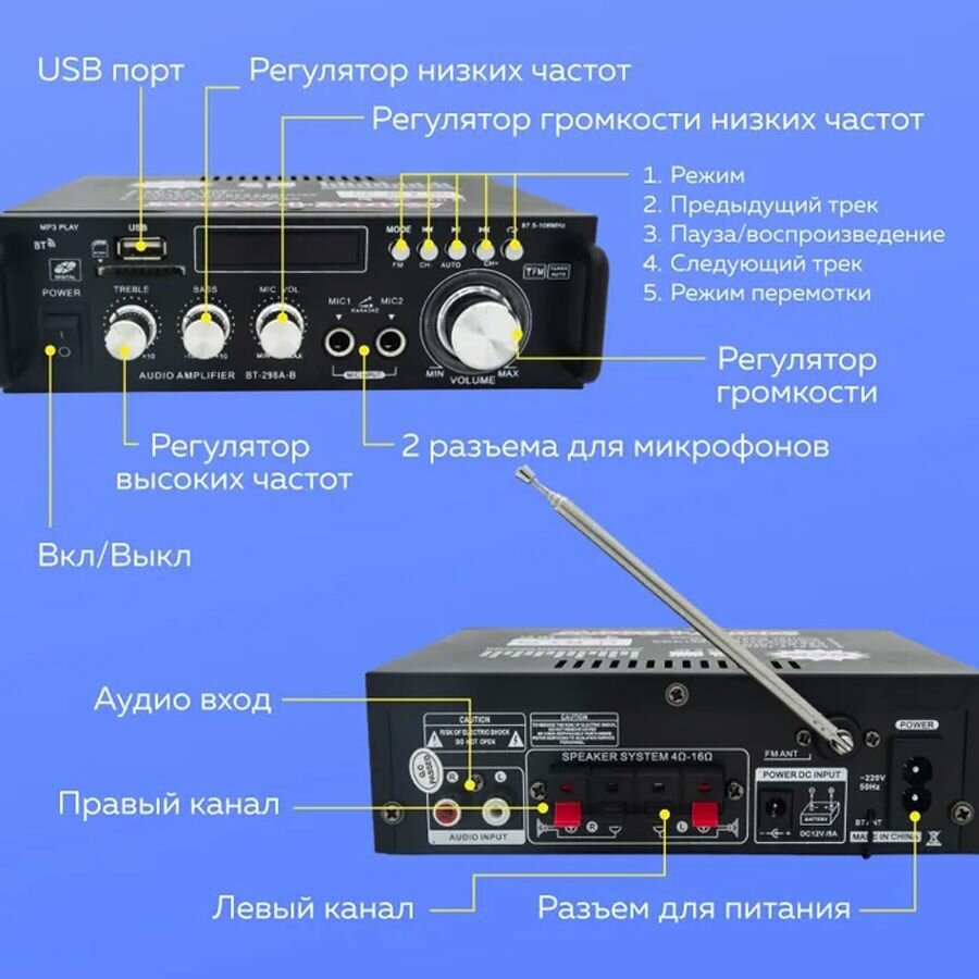 Bluetooth аудио усилитель Teli BT298A-B интересное: