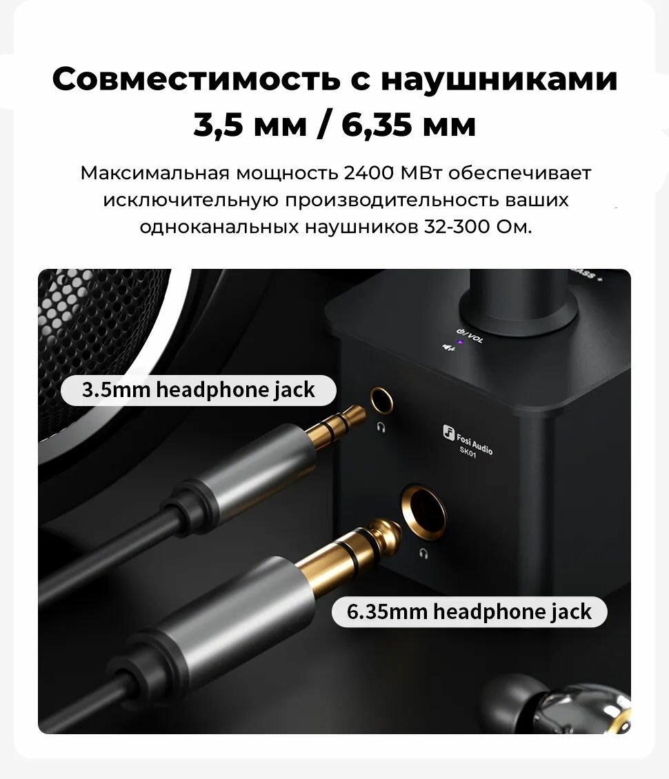 | Комплектация | Fosi Audio SK01, кабель USB Type-A/C Type-C для подключения блока питания, инструкция |